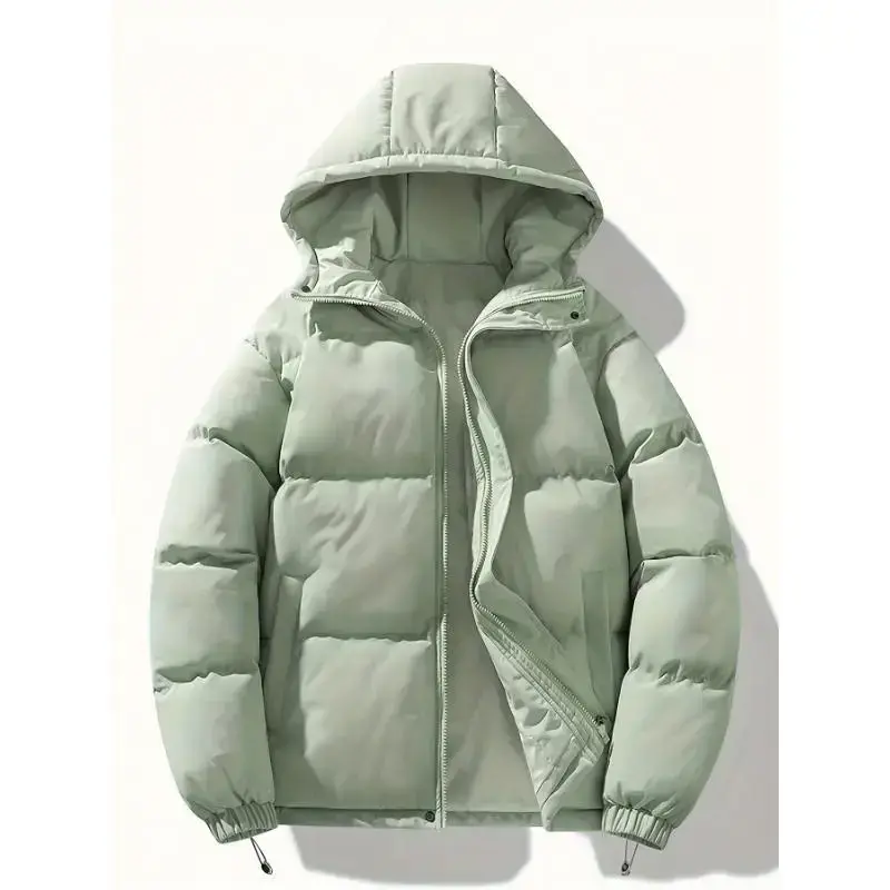 Vibe Vogue Unisex Hooded Puffer Jacket, Polyester Fiber Filled, Non-Stretch Solid Color, Long Sleeve, Regular Fit, with Drawstring, Zipper Placket, for Daily Casual Wear, Spring/Autumn/Winter Coat, MD3333 Black Tops Womenswear Fab