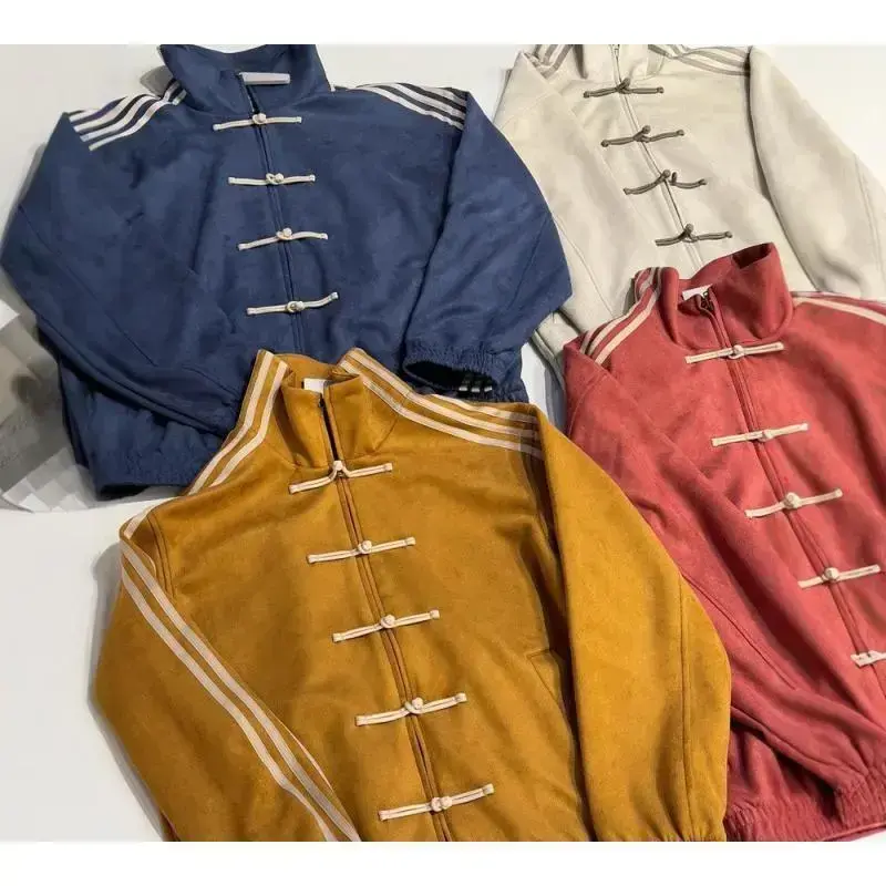 Silk Stand Collar Button Jacket for Men Spring Loose Tang Suit Coat