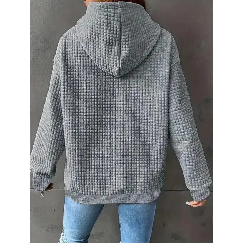 PrettyGarden Women's Casual Long Sleeve Lapel Zipper Sweatshirt Drawstring Loose Pullover Tops Fall Sweater-Womenswear Cotton Fabric