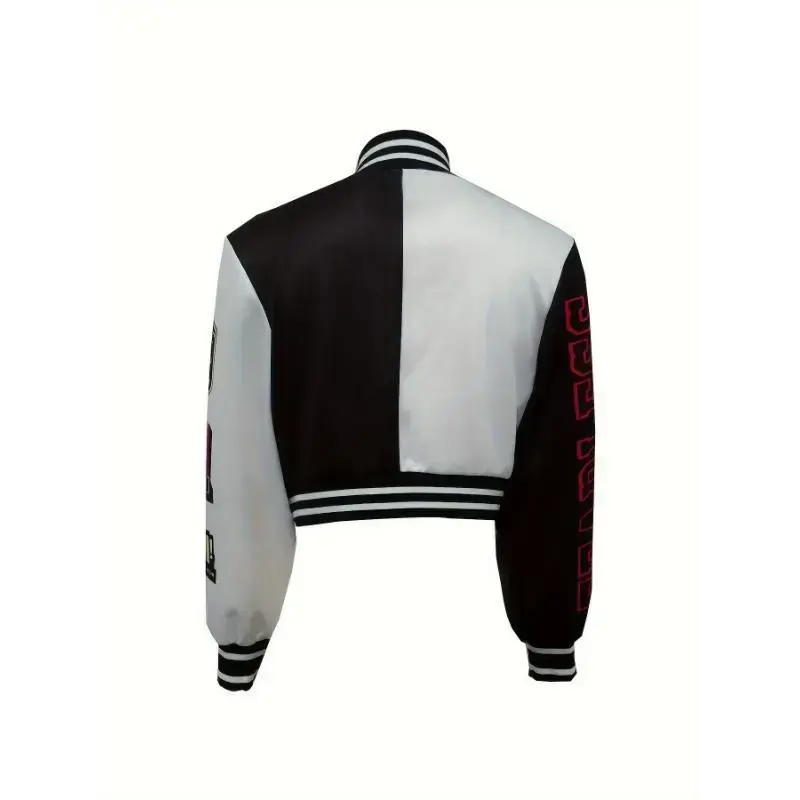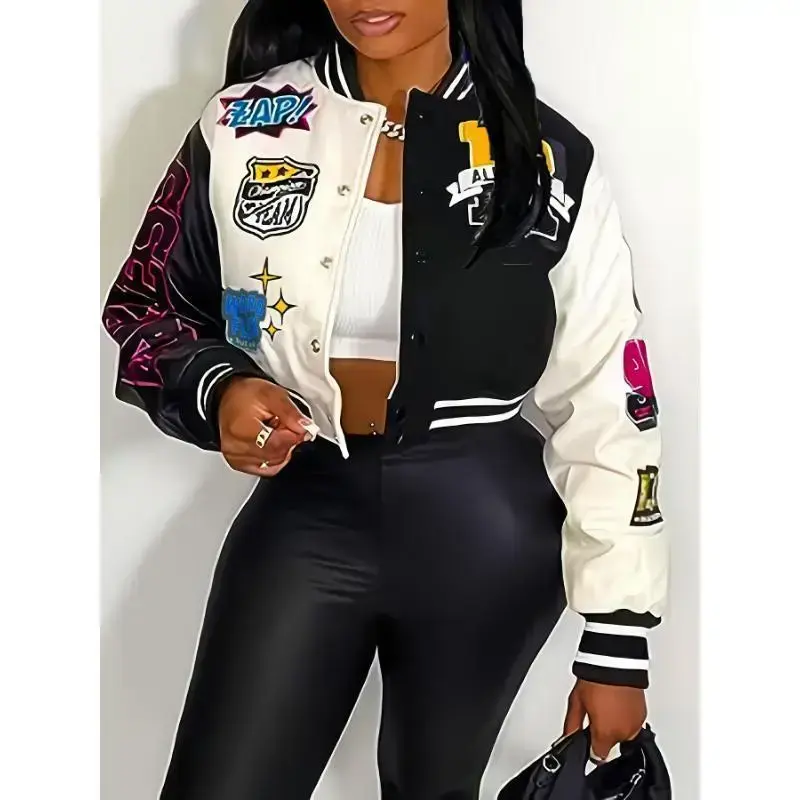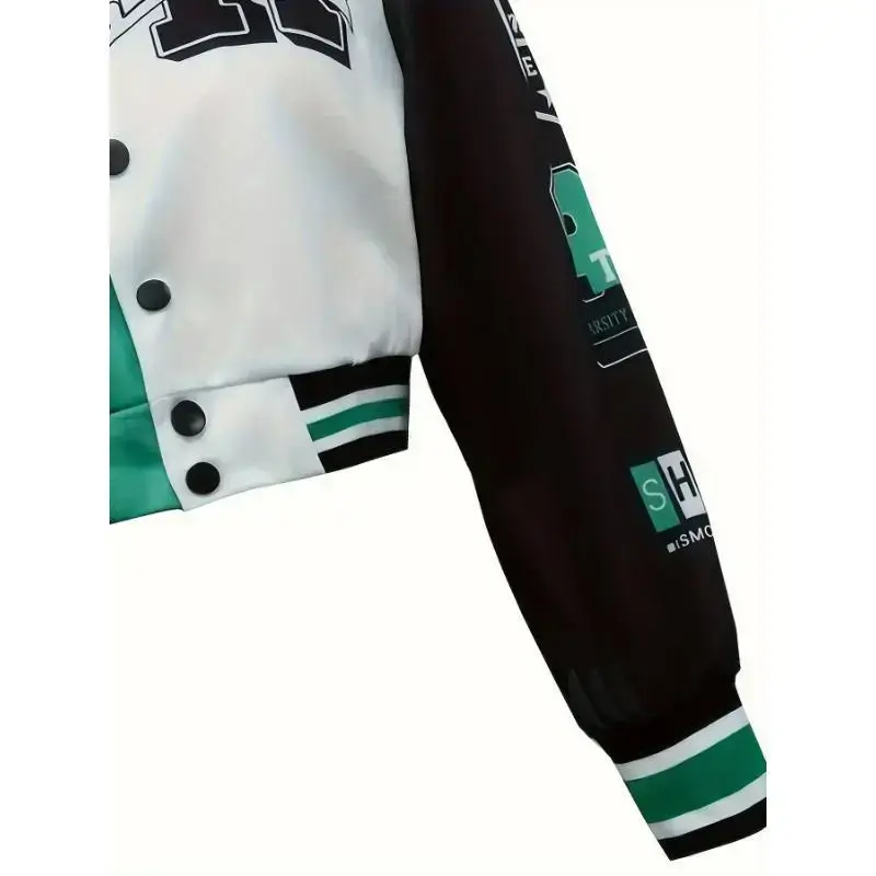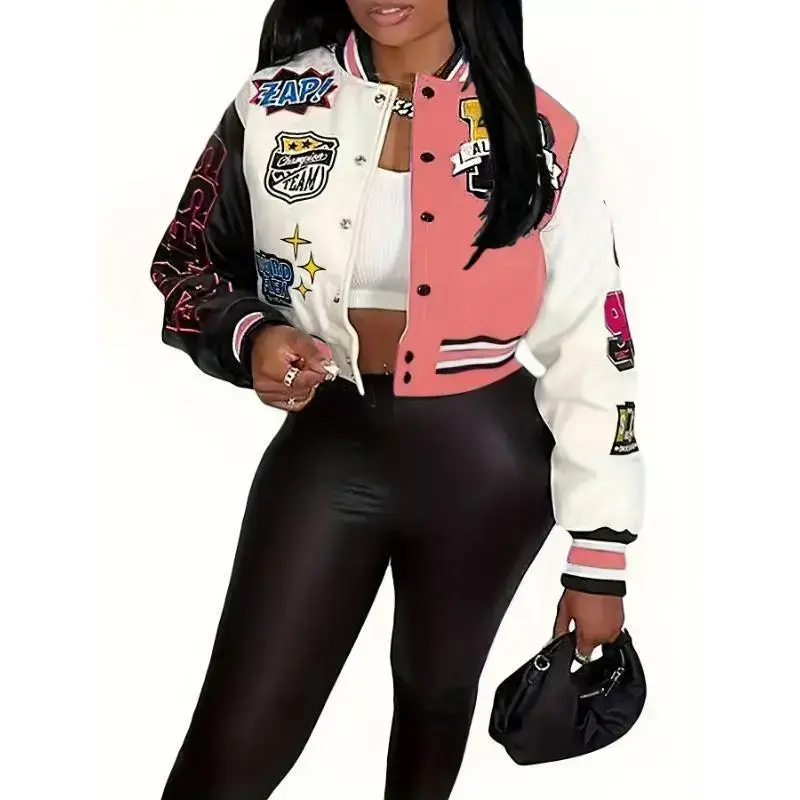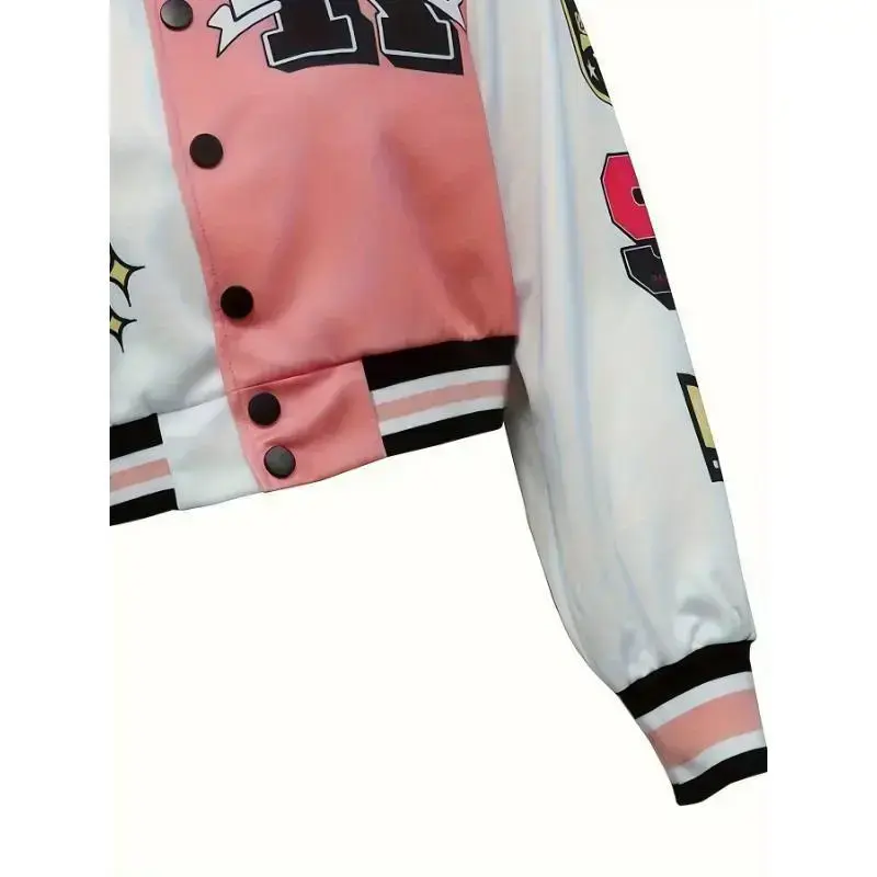 Ventus Bai Women'S Casual Printed Team Jacket, Lightweight Short-Sleeve Sports Trendy Fashion Jacket, Baseball Uniform, Sexy Crew Neck, All-season Knit Polyester 100%, 200g/m2 Fabric Weight Tops Collar Womenswear Coats Comfort Out