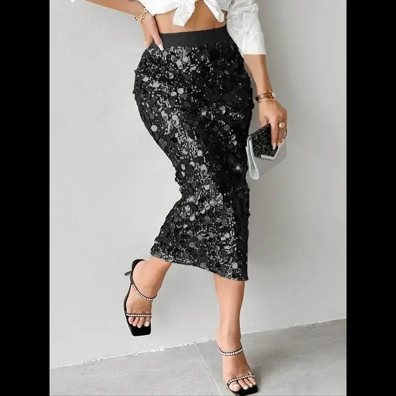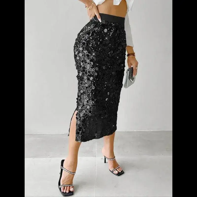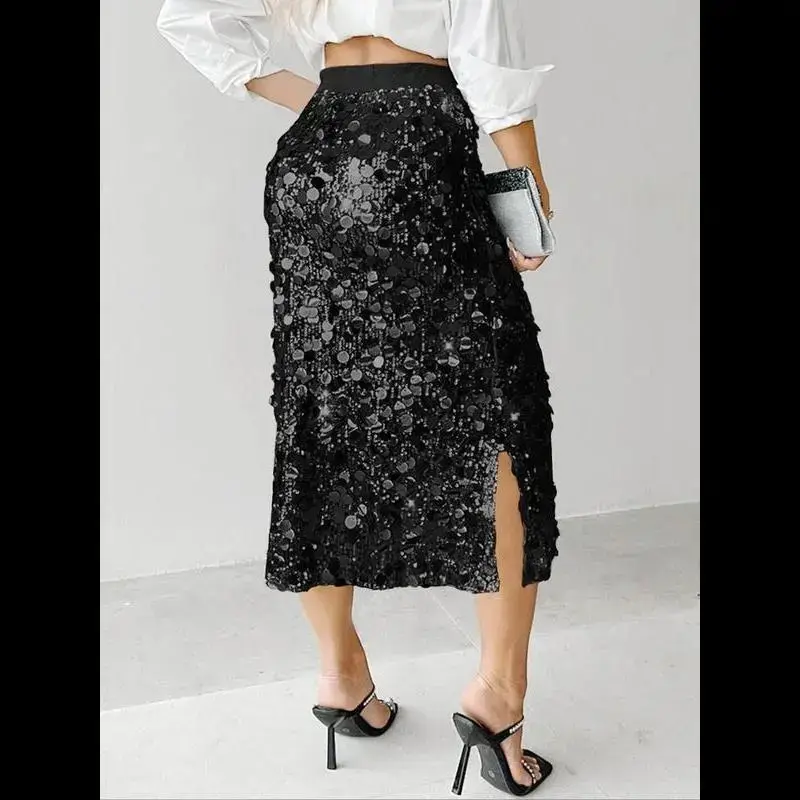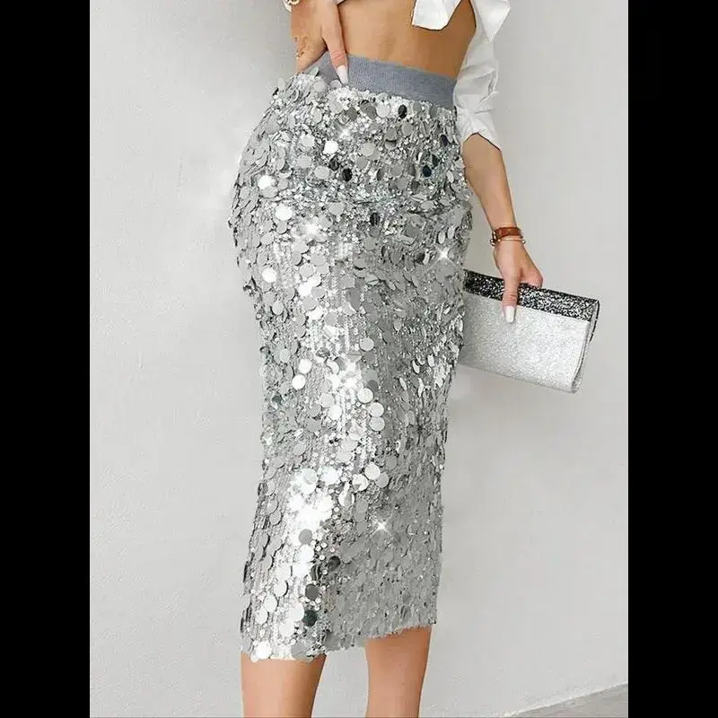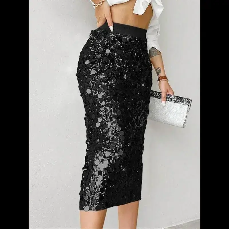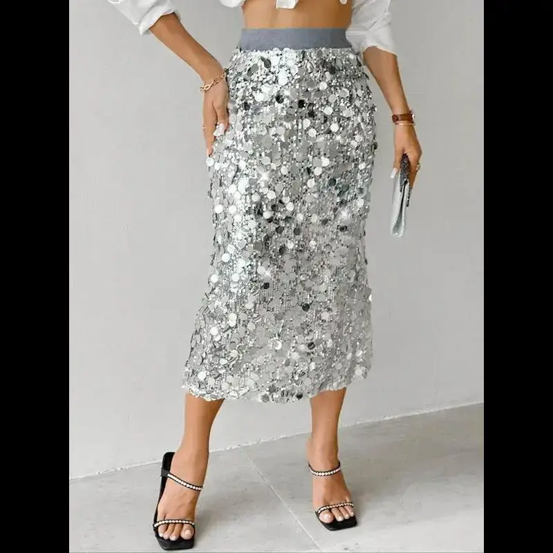 Women's Glitter Sequins Midi Skirt, Elegant Fashion Skirt for Party Club Dating, Ladies Summer Clothes