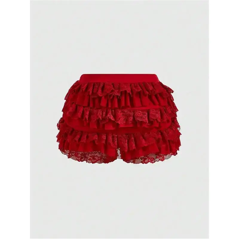Women's Y2k Ruffle Shorts Lace Lolita Bloomers Elastic Waist Bow Front Shorts Micro