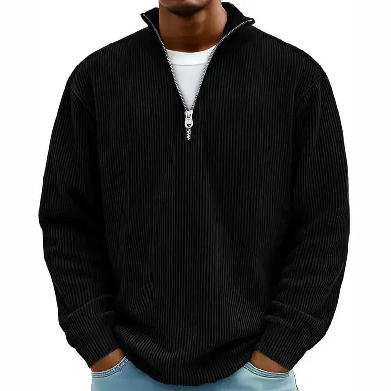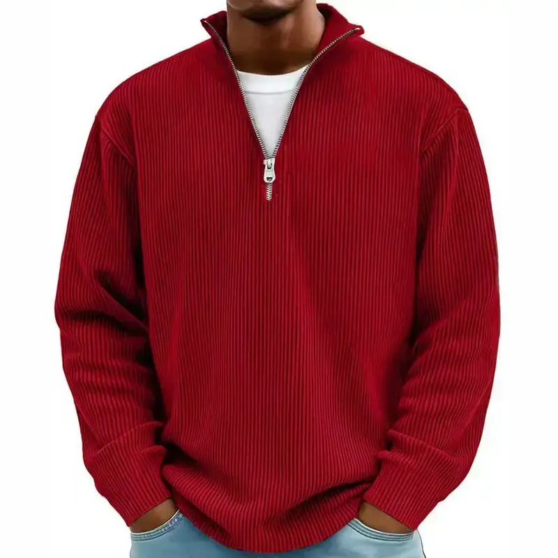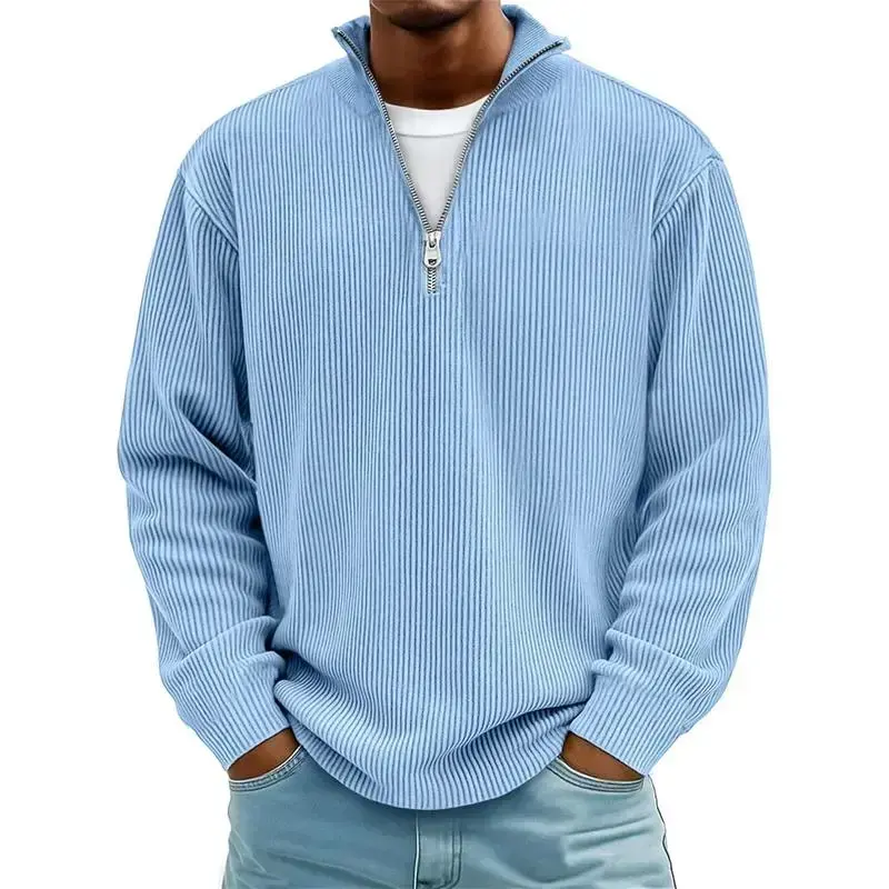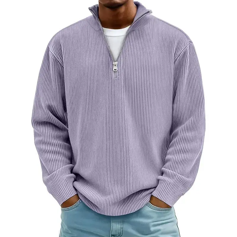 Men's Stylish Quarter-Zip Corduroy Ribbed Polo Sweatshirt ? Upgrade your casual look with this men's quarter-zip corduroy ribbed polo sweatshirt. It features a zippered neckline for an adjustable fit, ensuring a relaxed silhouette for ease of movement. Ideal for spring, autumn, and early winter, this sweater is made from 100% polyester. Available in various colors and sizes, it's perfect for teens and casual wear. ?? Key Features Specifications Packaging and Notes