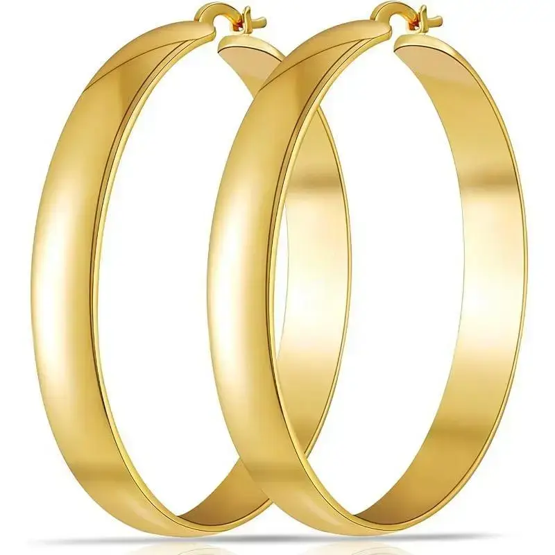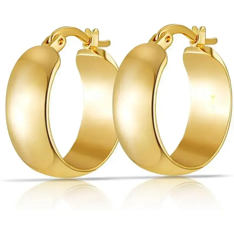 8mm Thick 925 Sterling Silver Hoops Earrings for Women 14K Real Gold Large Hoop Earrings Hypoallergenic and Lightweight Big Hoop Earrings for Women