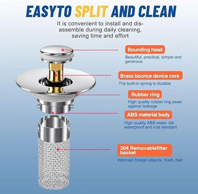 Metal sink filter made of 304 stainless steel-Bathroom Sink Drain Stopper-PopUp Drain with Stainless Steel Filter Basket Hair Catcher, Universal Replacement for 1.1-1.45 Inch Sinks