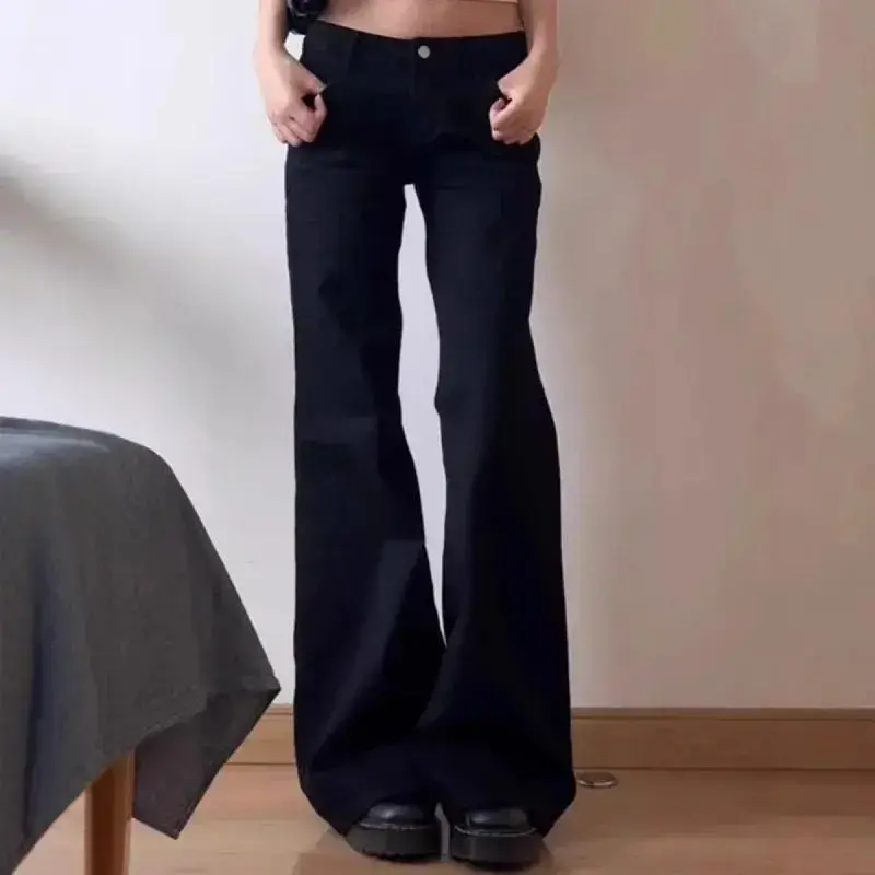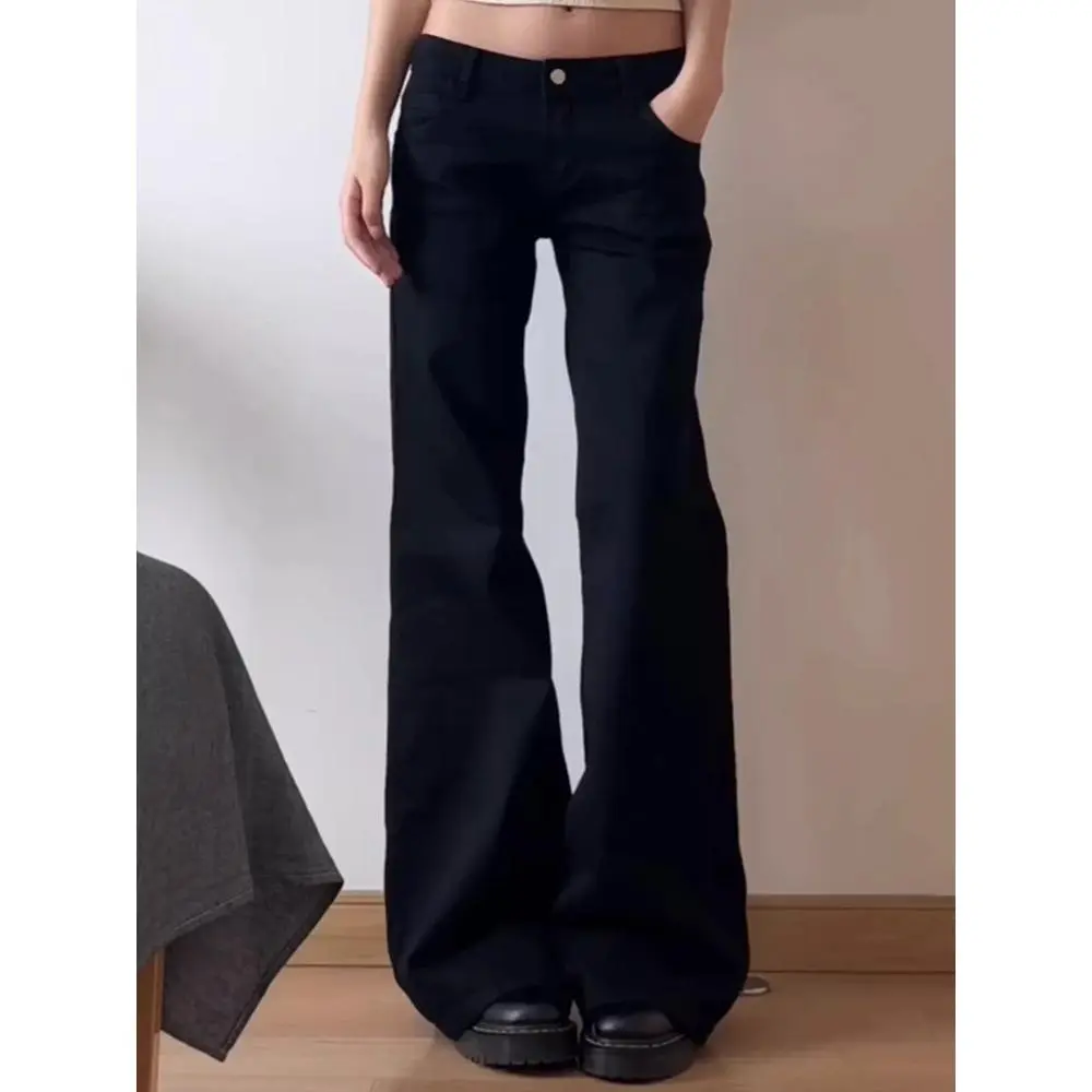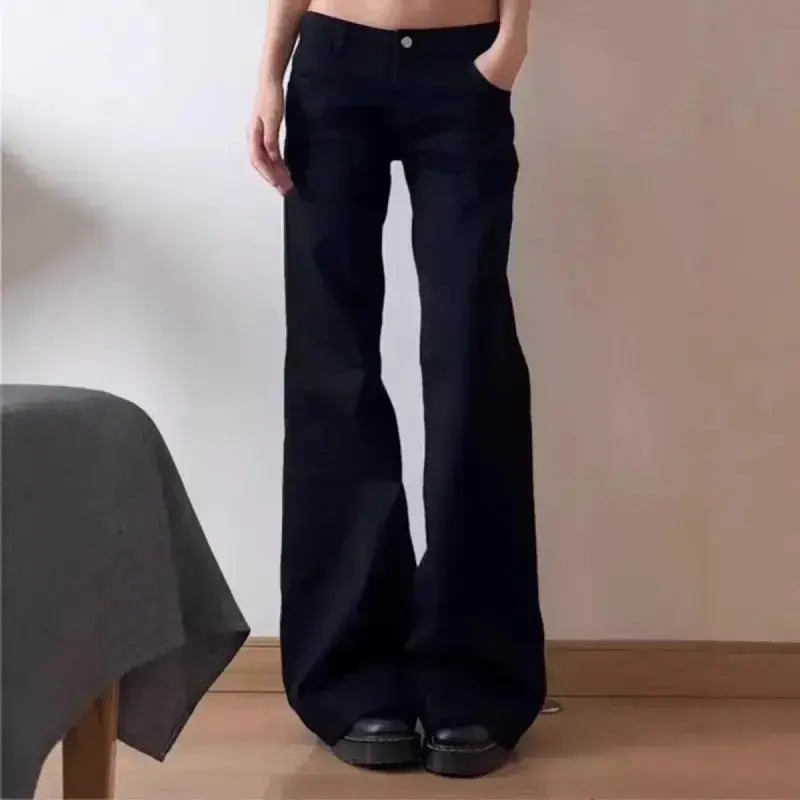Womenswear Pants trackpants Black Low Waist Wide Leg Micro Flared Autumn Loose Fit Straigh Straight Bottom Chic Jeans