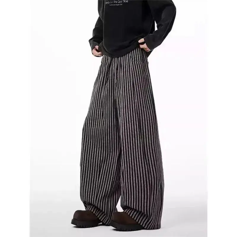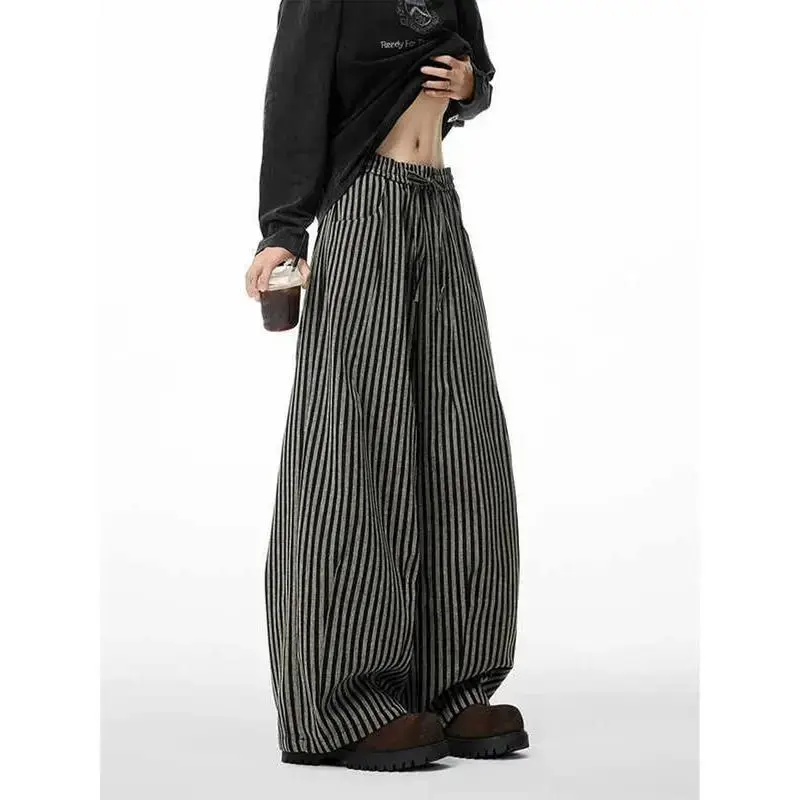 Women's Black Gothic Striped Long Pants Baggy Sweatpants Harajuku Y2k Emo Vintage Oversize Trousers Japanese 2000s Style Clothes