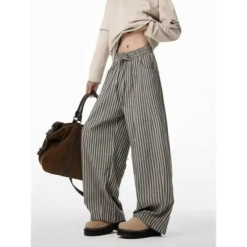 YeoKou Women Drawstring Striped Pants Loose Wide Leg Lounge Pants Casual Palazzo Pants Trousers with Pockets Bottom Oversize