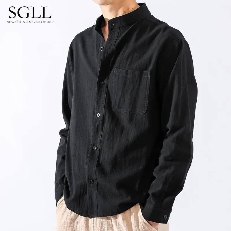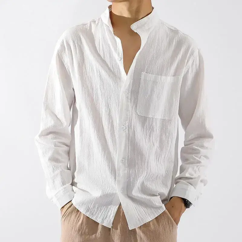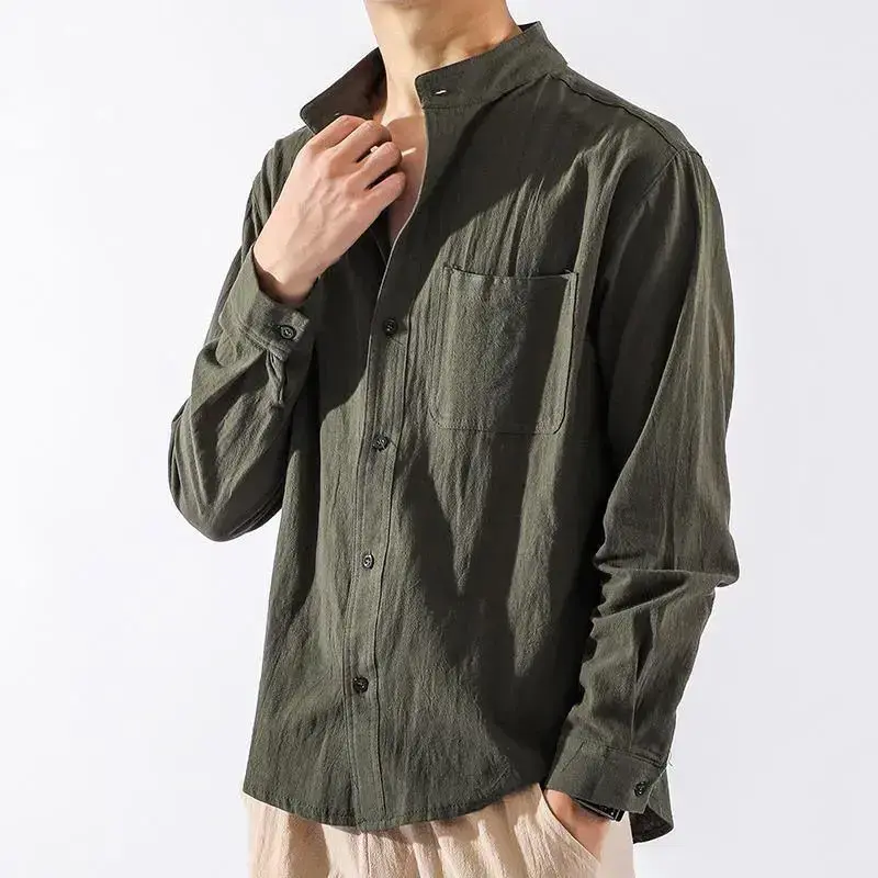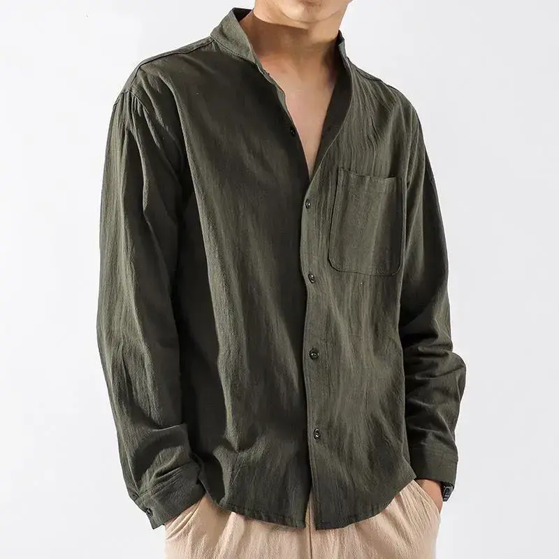 Spring Autumn Versatile Linen Shirt Men Long Sleeve Chinese Style Men's Shirt Loose Men's Jacket Cotton Linen Casual Top
