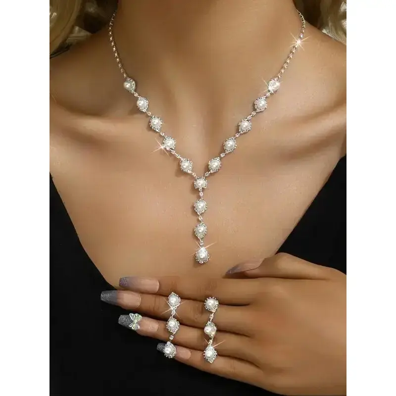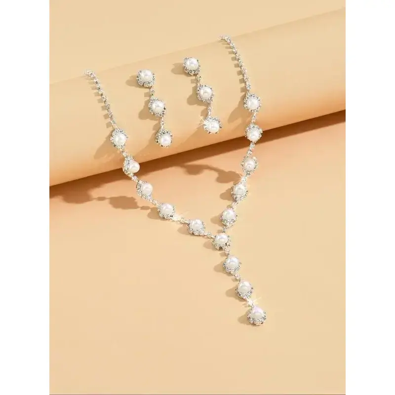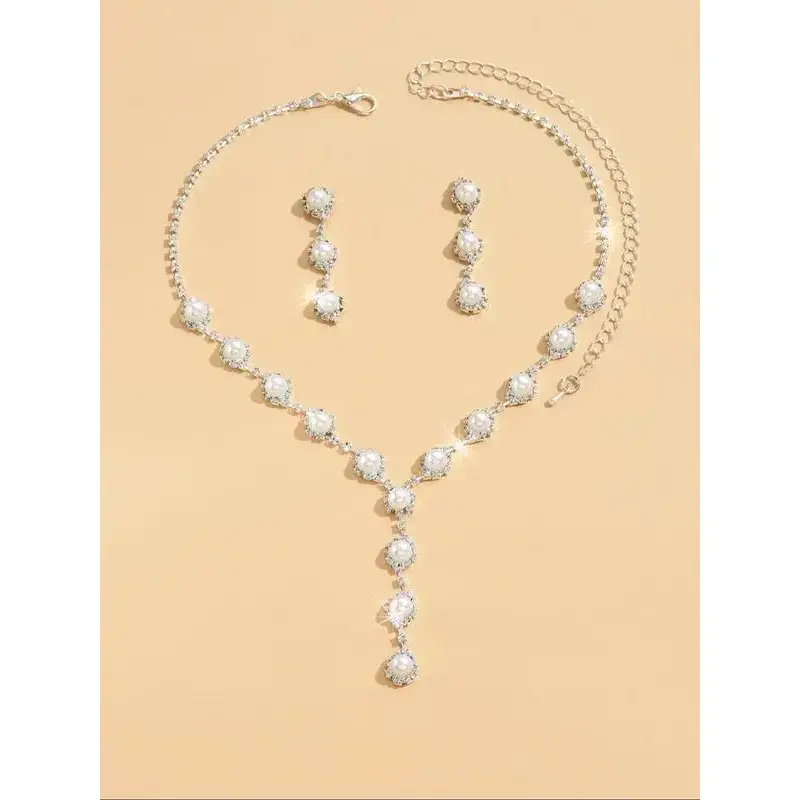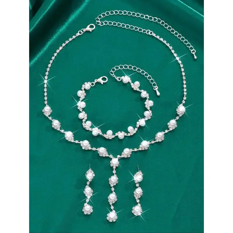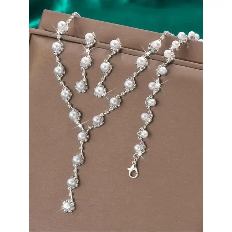 Faux Pearl Decor Necklace & Dangle Earrings & Adjustable Bracelet, Elegant Jewelry Set for Women, Trendy All-match & Exquisite Jewelry As Gift