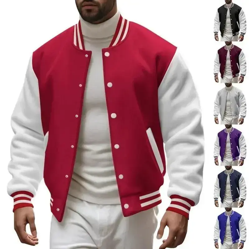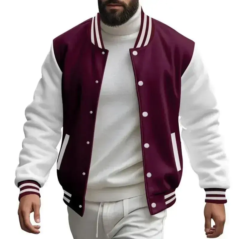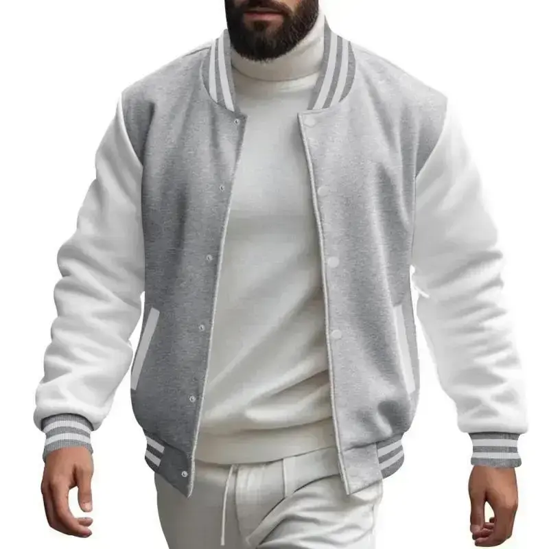 Men's Autumn and Winter Flight Jacket Baseball Jersey Velvet Loose Casual Stand-up Jacket Men Varsity Jacket Coat for Men