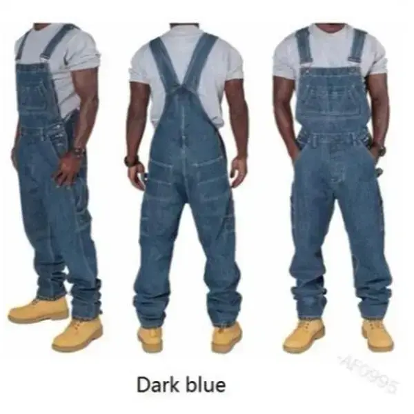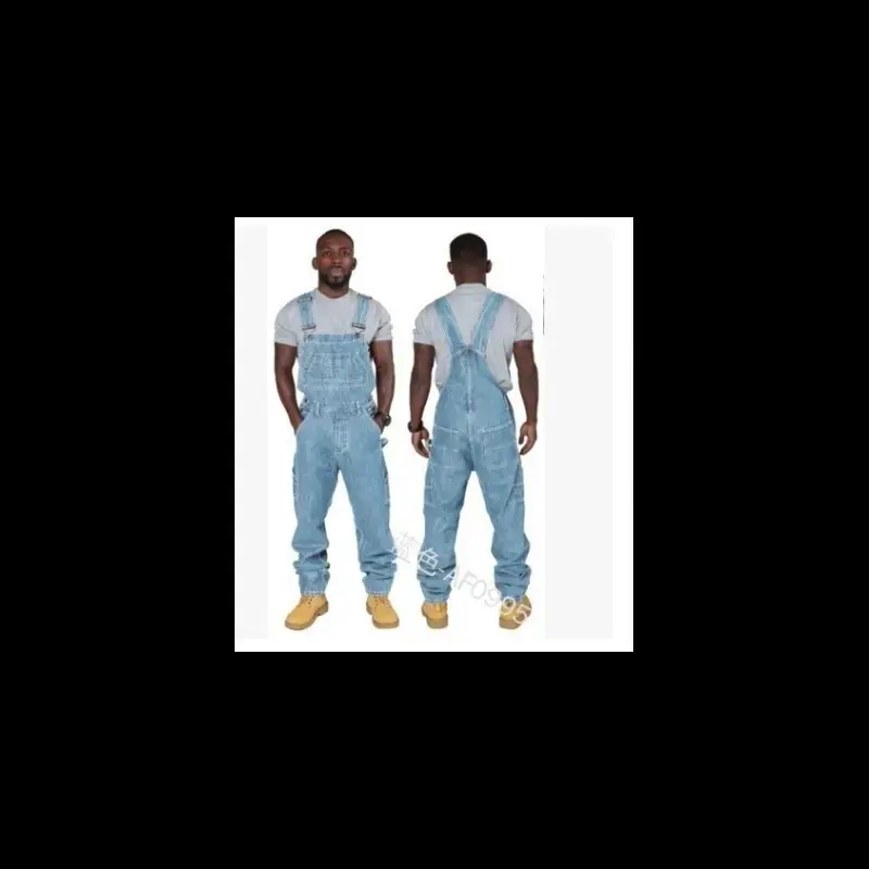 Men's Cowboy Siamese Multi-Pocket Jeans Overalls Suspenders