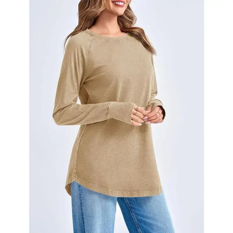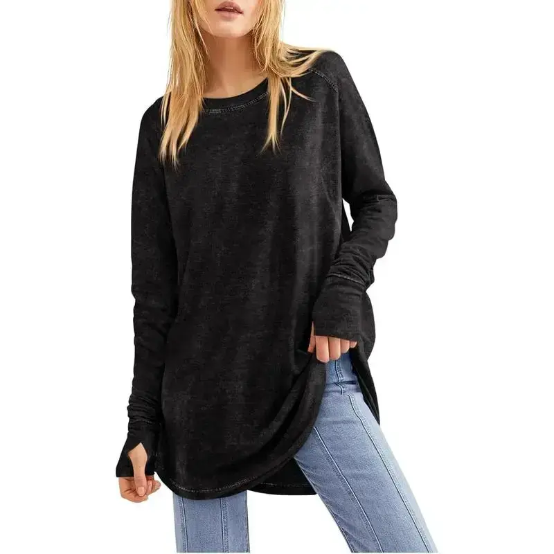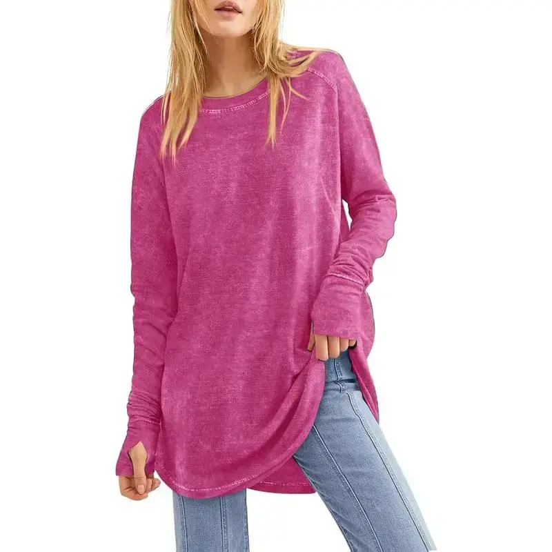 Product Description Womens Oversized Long Sleeve Shirts Washed Loose Fit Tunic Tops with Thumb Holes Tankaneo Women's Fall Fashion 2024 Long Sleeve Tops Casual Vintage Tunic Shirts Crafted with a crew neck and round hem, these tops offer a loose fit that ensures comfort without compromising on style. The thumb holes add a trendy, modern twist to a classic design. It is perfect for casual, daily, home, school, work, office, date, outdoor, vocation, street, travel, and other indoor outdoor activities