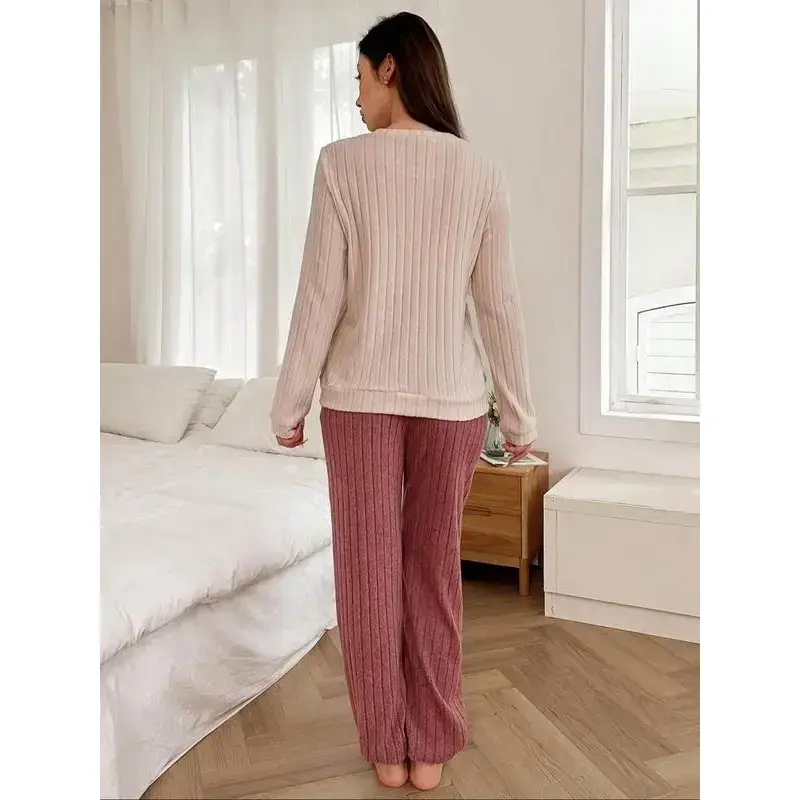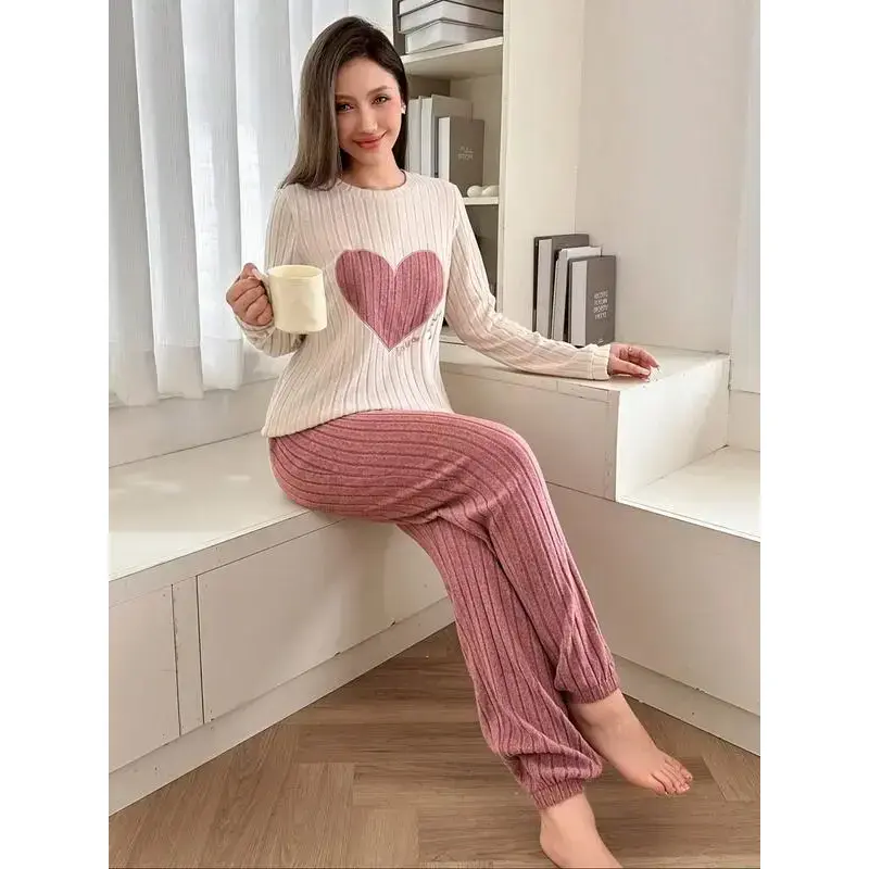【Warmth Assurance】: Crafted from thick coral fleece, this outfit provides optimal warmth for the chilly winter months. 【Charming Patterns】: Features playful heart and letter patterns, adding a whimsical touch to your home attire. 【Soft Fabric】: Made from soft sweater fabric, delivering a gentle touch against the skin for everyday wear. 【Loose Fit】: Designed with a loose-fitting cut for a relaxed wear experience, allowing for easy and free movement. 【Seasonal Specialty】: Tailored specifically for winter, ensuring warmth and coziness during cold weather seasons.