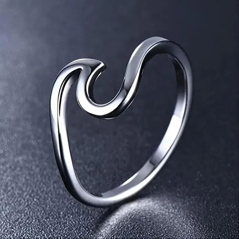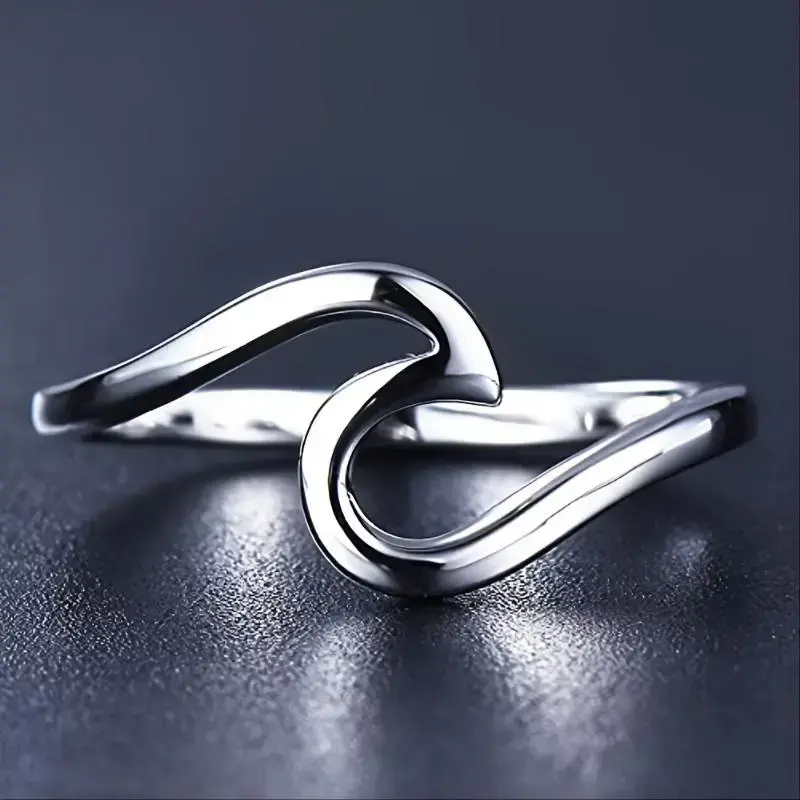 925 Sterling Silver Wave Ring Personality Jewelry For Women Gift