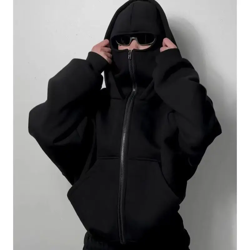 ??Full-face mask??: Integrated full-face mask provides enhanced protection against the elements while adding a unique look. ??Moderate thickness??: Constructed from moderately thick fabric, this sweatshirt is suitable for wear in fall and winter seasons. ??Fitted silhouette??: The fitted cut offers a sleek look while ensuring a flattering fit for a range of body types. ??Knit fabric??: Crafted from high-quality knit fabric, ensuring warmth and durability throughout everyday wear. ??Convenient zip??: Features a convenient zipper closure, allowing easy wear and removal while enhancing the overall aesthetic.