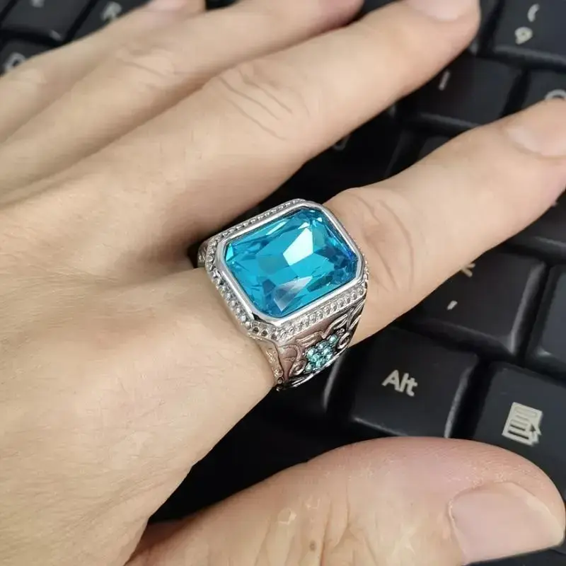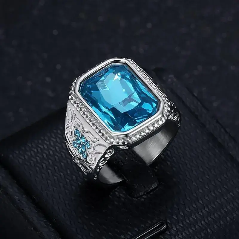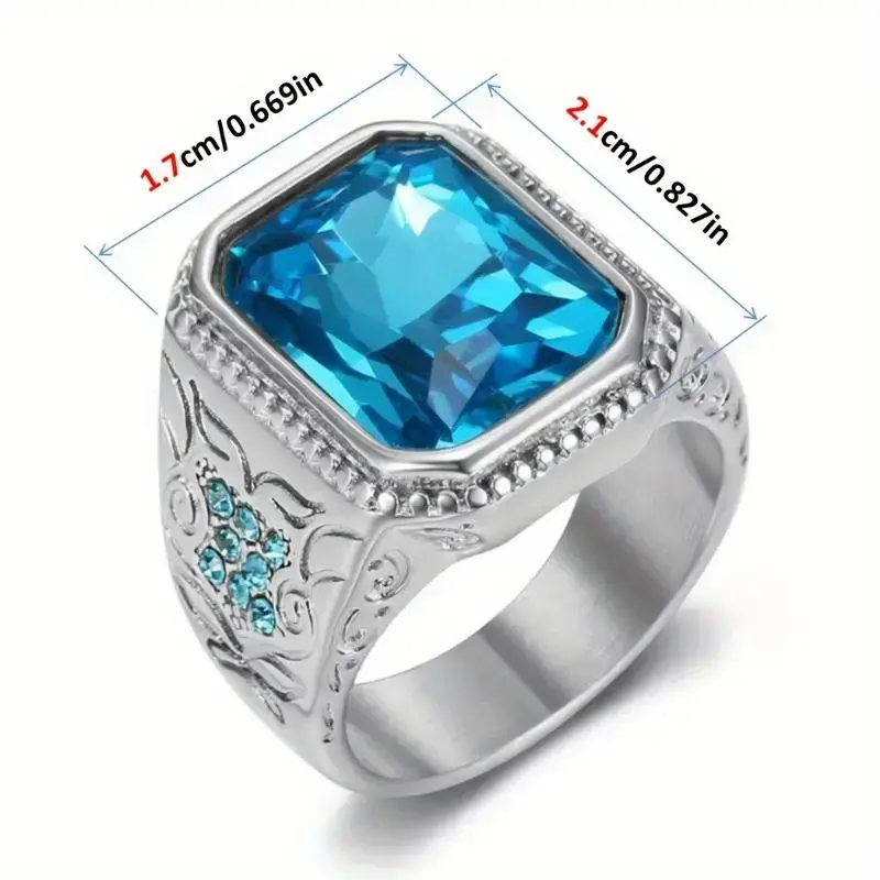 Hip Hop Style Men'S Ring, 316L Stainless Steel, with Blue Glass Faux Gemstone and Imitation Diamonds, Single Band JewelryMother