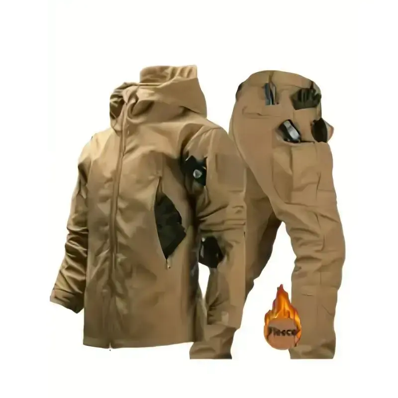 Men's Two-Piece Tactical Outfit ? Ideal for Outdoor Adventures ? This men's two-piece tactical outfit features a lined hooded jacket and pants. Designed for windproof, waterproof, and durable performance, it's perfect for autumn and winter activities. The outfit includes multiple pockets for convenience. Crafted from linen, it ensures comfort and functionality. Key Features Perfect for Your Needs This outfit is ideal for those seeking a reliable and versatile piece for outdoor activities. The multiple pockets add practicality, making it a great choice for various outdoor adventures.