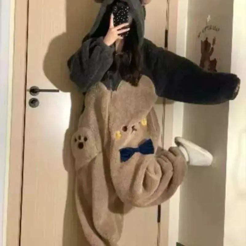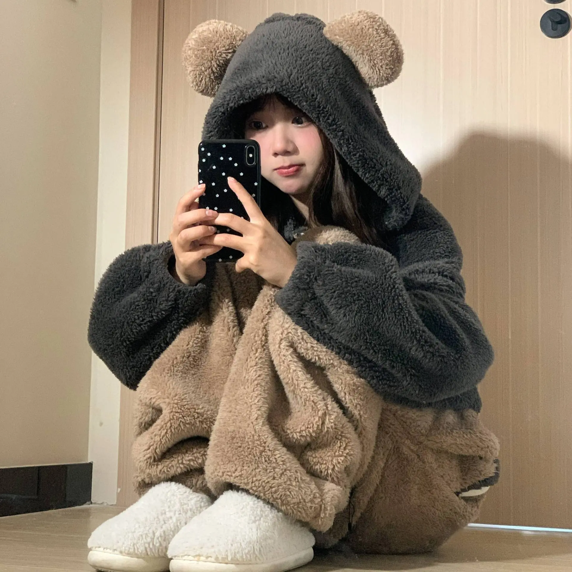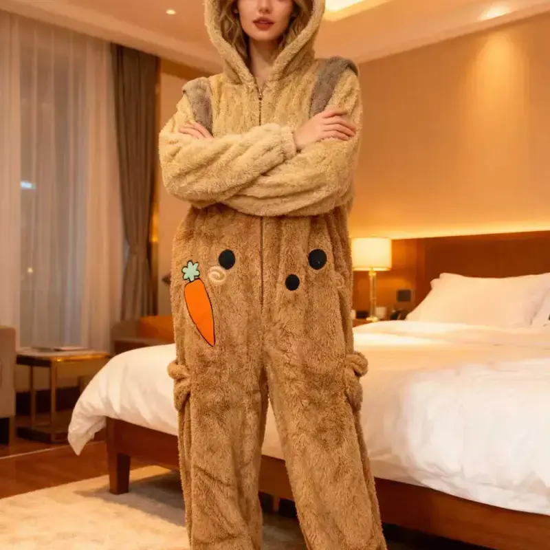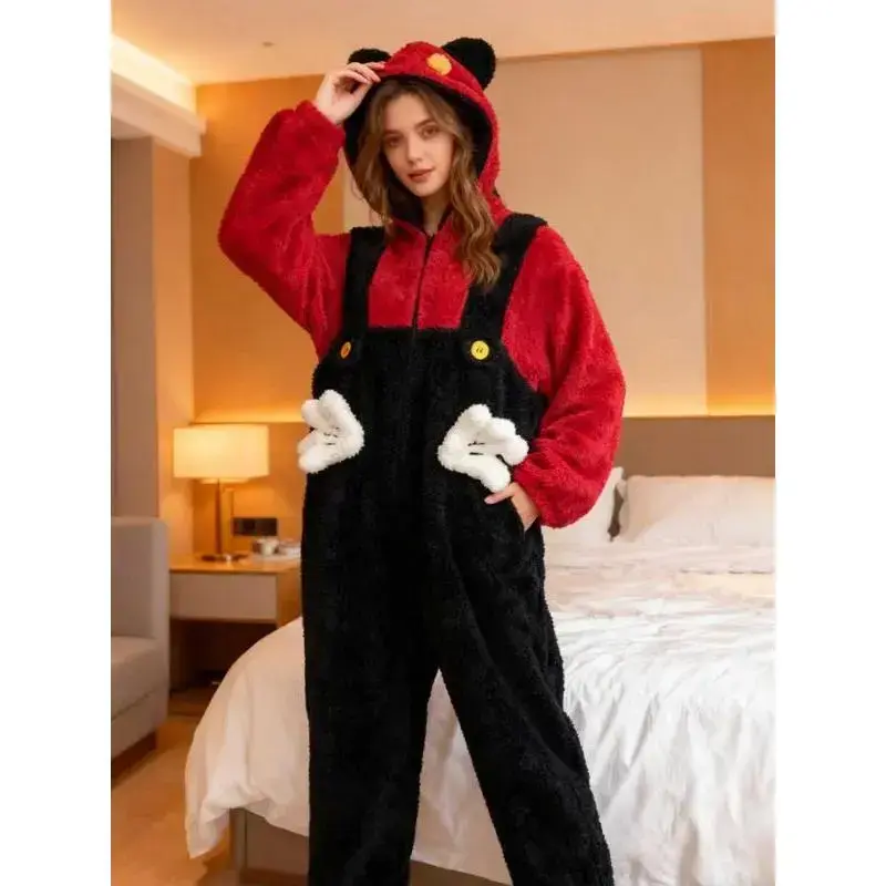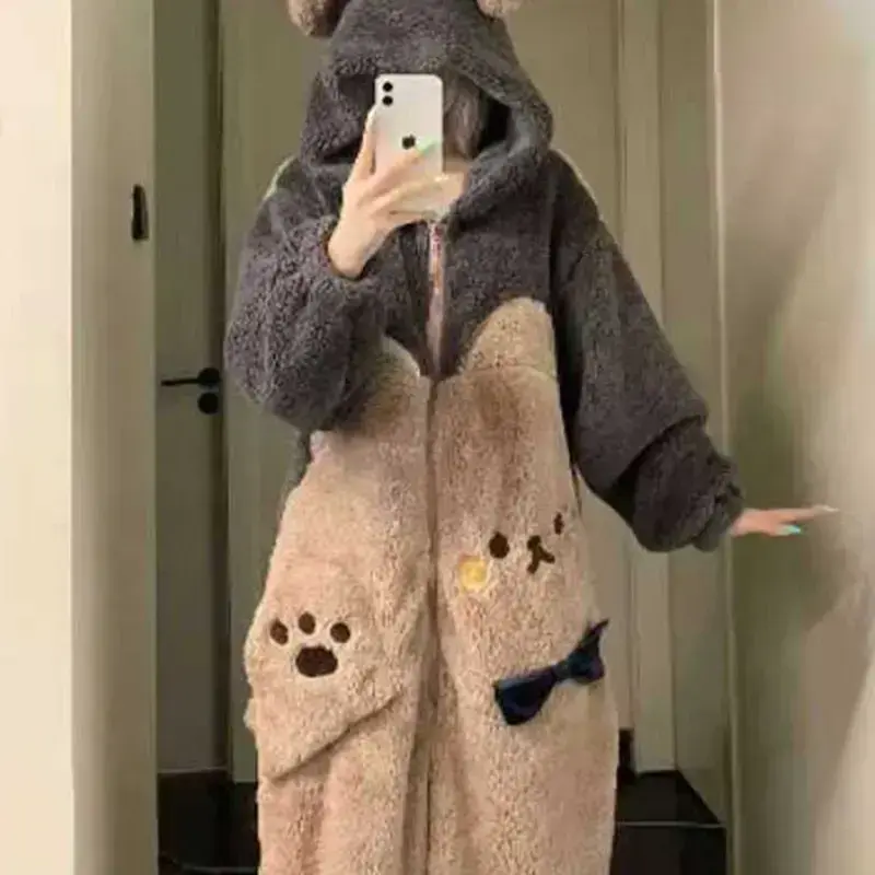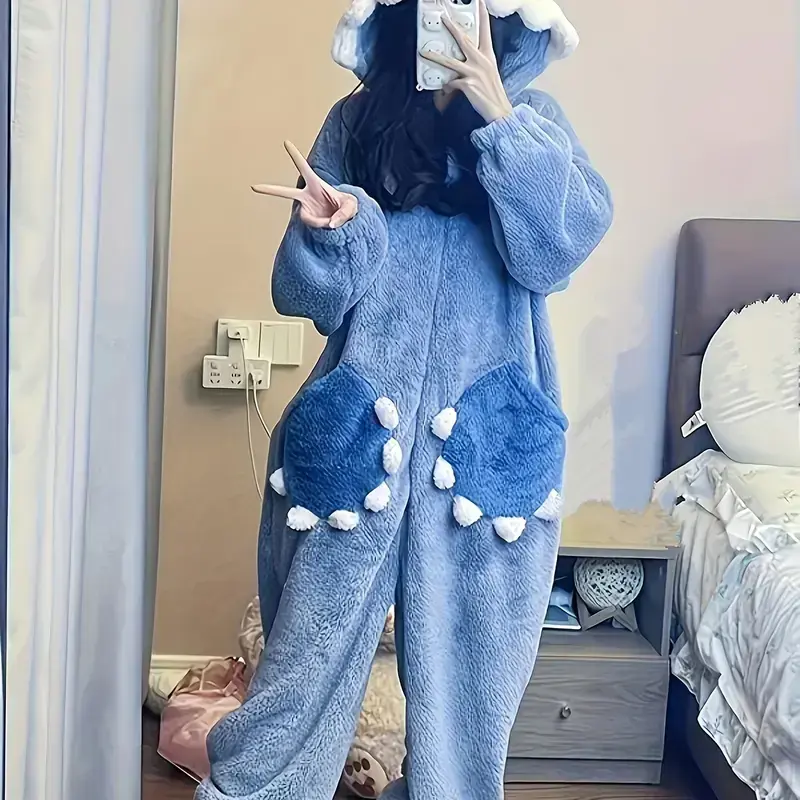 1pcs Women's Cute Cartoon Bear Hoodie Dress, Unicorn Design Winter Role Play Onesie, Christmas Party Casual and Pajamas
