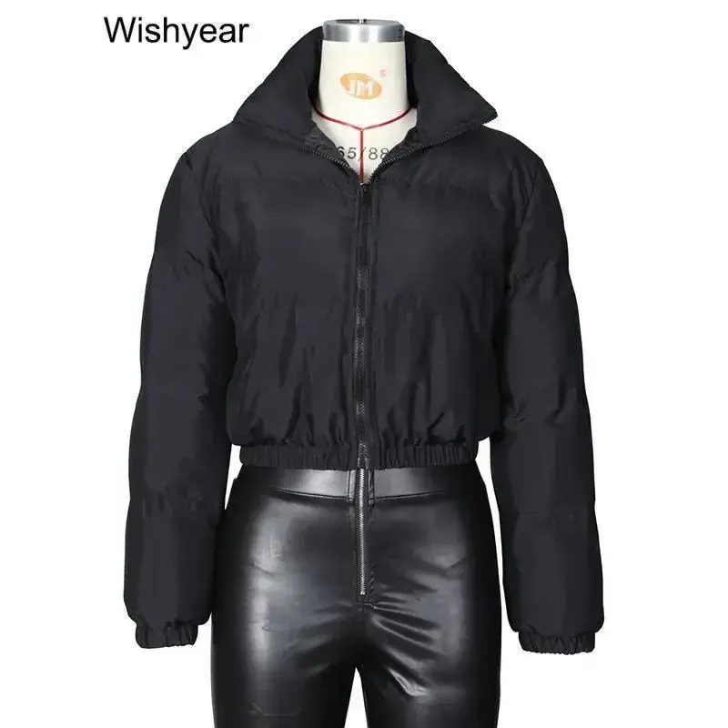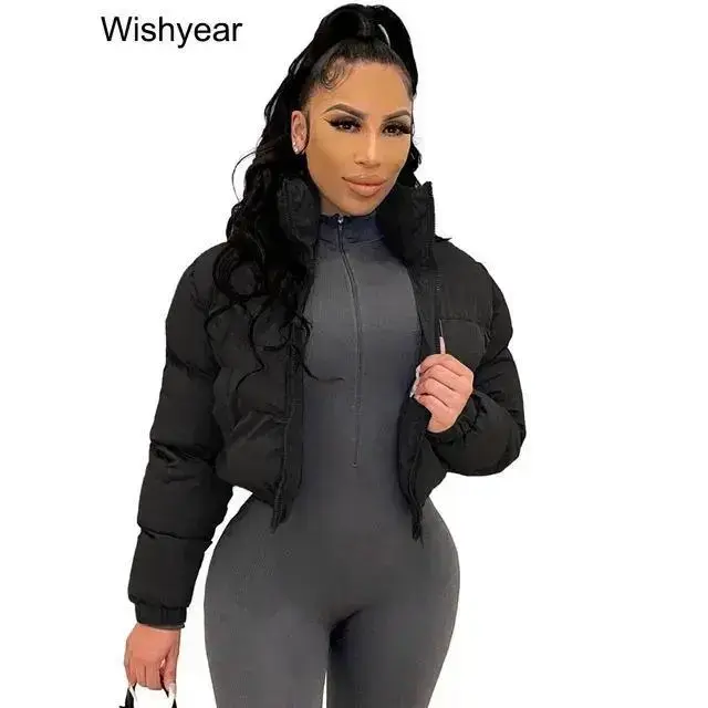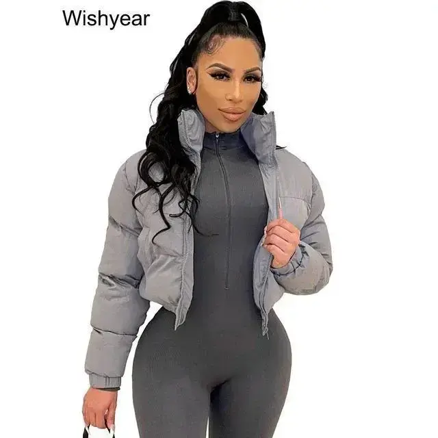 Winter Thick Warm Cotton Down Jacket Women Clothing Gray Zipper Short Puffer Parkas Coats Outwear Female Crop Tops Streetwear