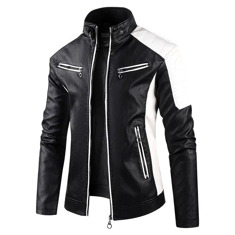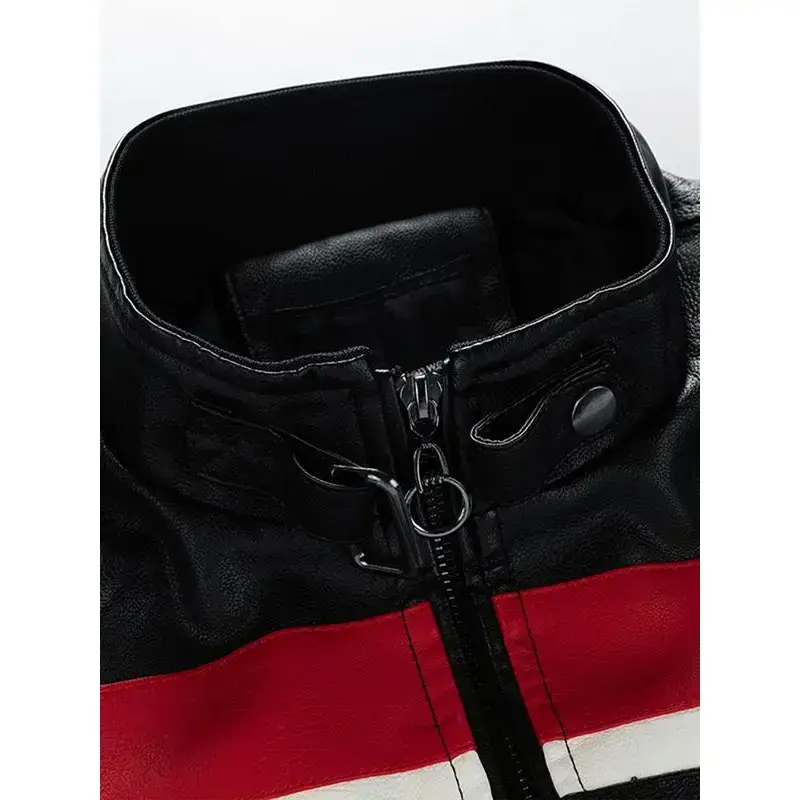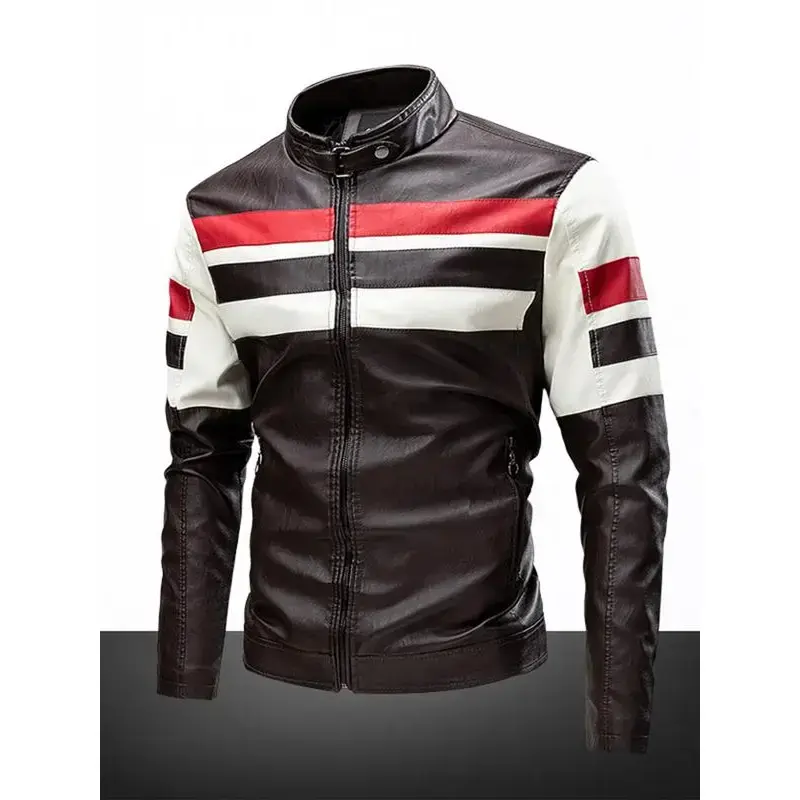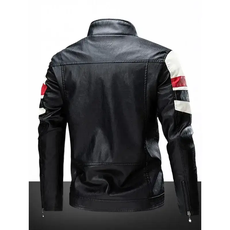 High-quality men's casual fashion windproof, waterproof, abrasion-resistant, scratch-resistant PU leather racing jacket. Versatile trendy patchwork cuffs with zipper closure. Outdoor sports leather jacket. Perfect as a gift for fr
