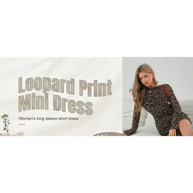 Womens Leopard Print Mini Dress Y2K Bell Long Sleeve Cheetah Short Dress Going Out Fall Outfit Casual Fabric