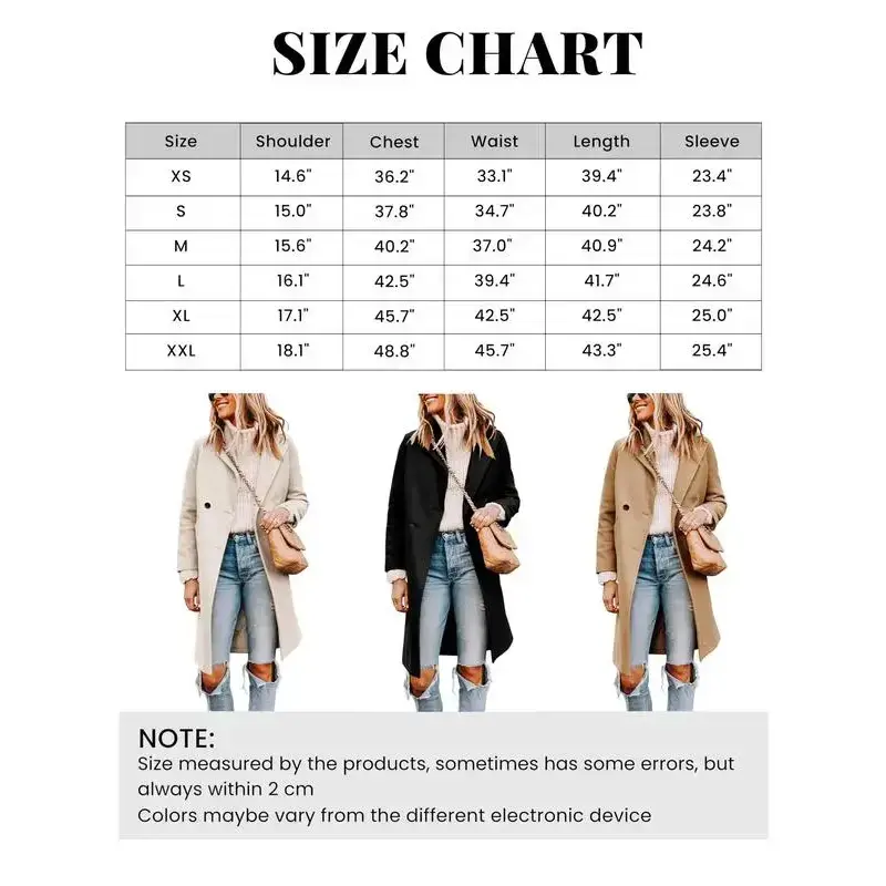 Tanming Women's Knee-length Overcoat ? Elevate your style with the Tanming Women's Knee-length Overcoat! ?? This casual, notch lapel single-breasted wool-blend peacoat is perfect for chilly days. Crafted from polyester and wool, it ensures softness and warmth. The solid color and slim fit design add a touch of elegance. Ideal for fall/winter, it's suitable for holidays, street, shopping, and casual outings. Key Features Versatile Occasions This overcoat is a versatile addition to your wardrobe. Perfect for everyday wear, it pairs well with turtleneck sweaters, long dresses, shirts, and jeans. It's simple yet sophisticated, making it a great choice for any winter outfit. Match with Ease The Tanming overcoat looks great with all winter outfits. Its solid color and slim fit ensure it complements various styles. Whether for holidays, street wear, shopping, or casual outings, this coat is a must-have.