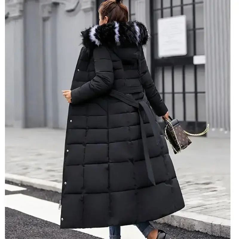 Long Down Cotton Parkas Coat Female New Winter Over Knee Loose Large Fur Collar Hooded Warm Thick Parkas Women Padded OvercoatGift