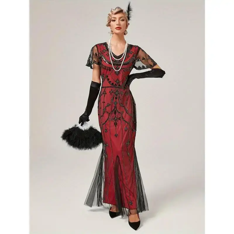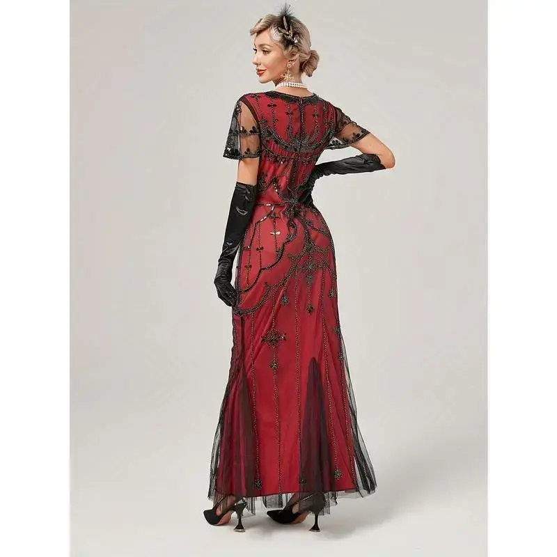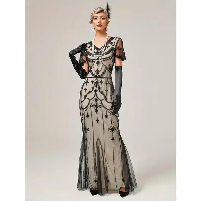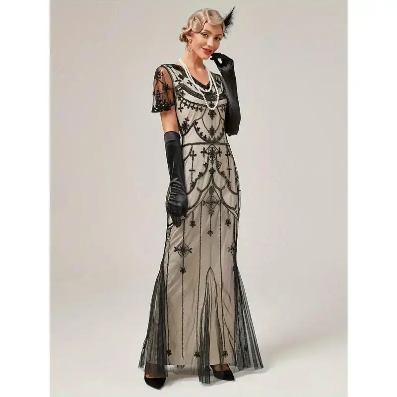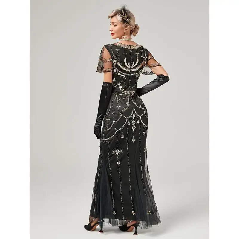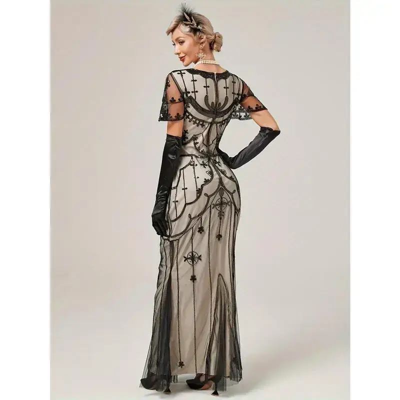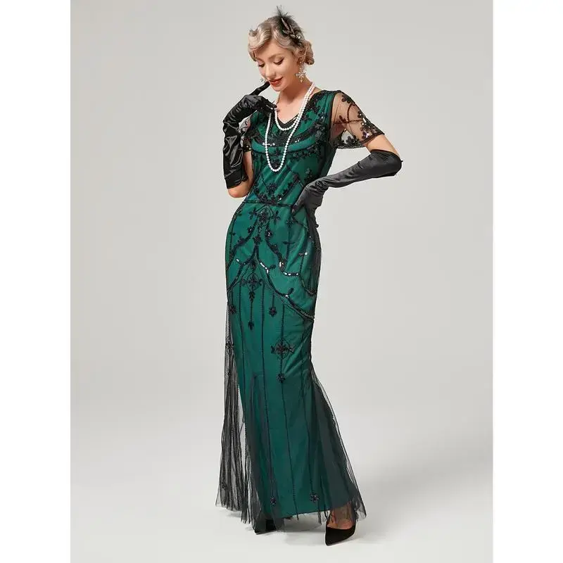 1920s Gatsby-Inspired Sequin Flapper Dress with Tassel Detail - Vintage Beaded Party & Banquet Gown for Women - Hand Wash/Dry Clean - Perfect for Themed Parties & Special Occasions - Ideal Gift for Women Womenswear Formal Green Bl