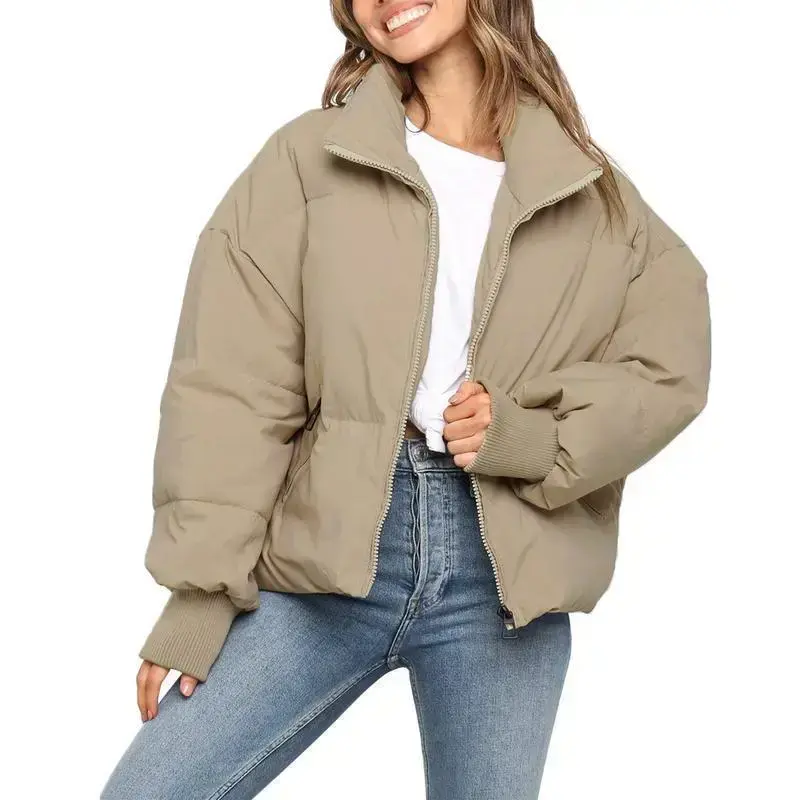 Women's Winter Long Sleeve Zip Puffer Jacket Pockets Baggy Short Down Coats Winterfashion Trendtok hopvalentinesday