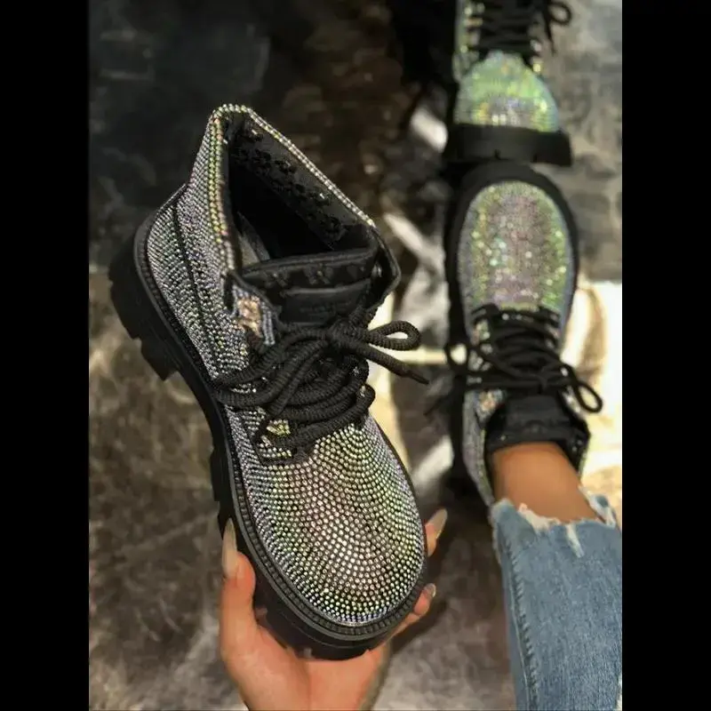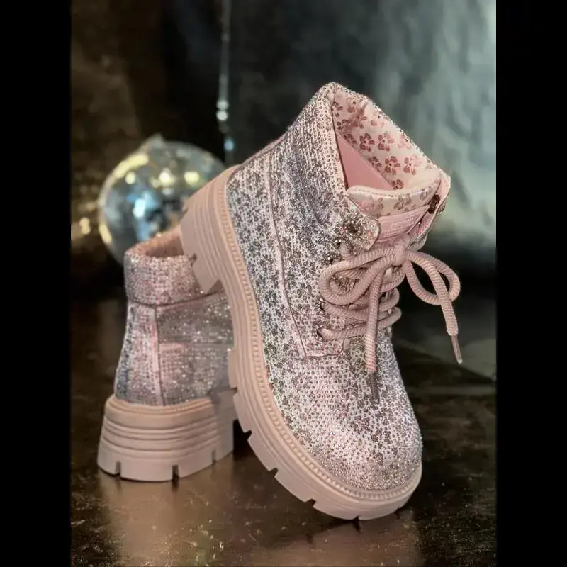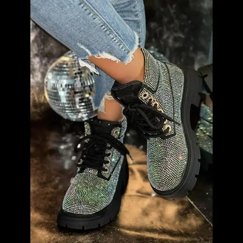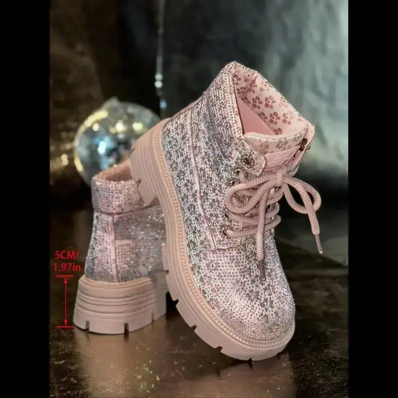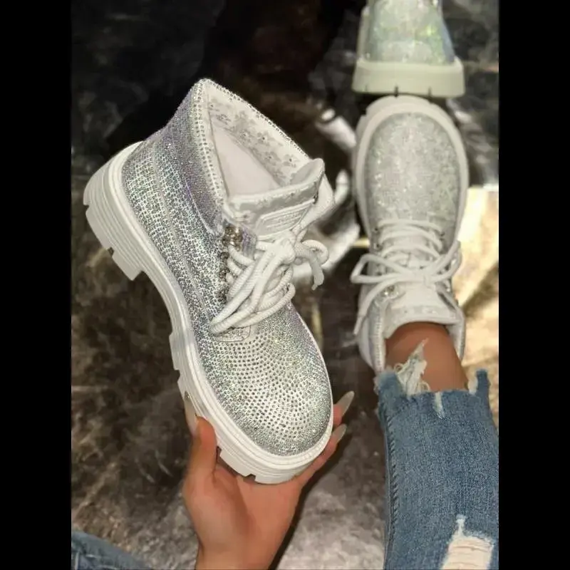 Women's Short Snow Boots with Sparkling Rhinestones, Fashionable and Sexy Winter Footwear, Stylish Ladies' Snow Booties
