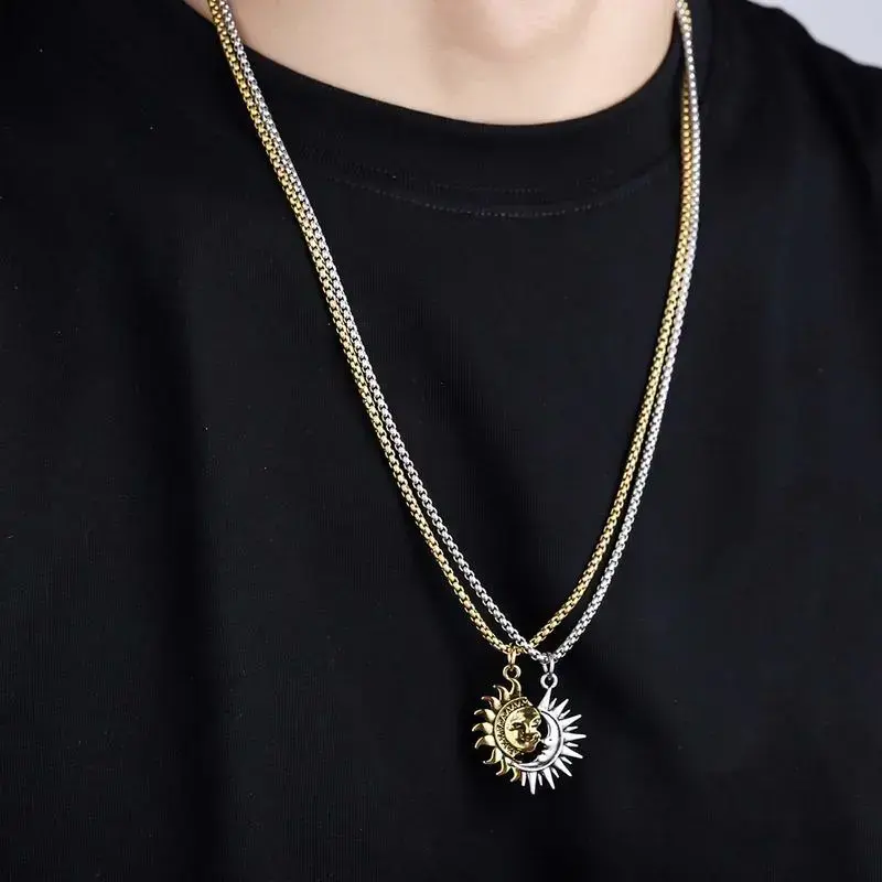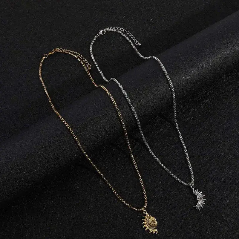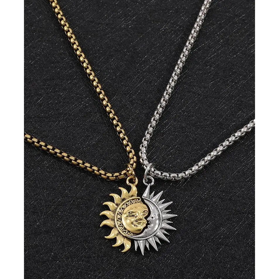 [Valentine's Day Gift] Sun and Moon Asymmetrical Couple Necklace Niche Design All-match Simple Retro Men and Women Jewelry Brothers Necklace Gift
