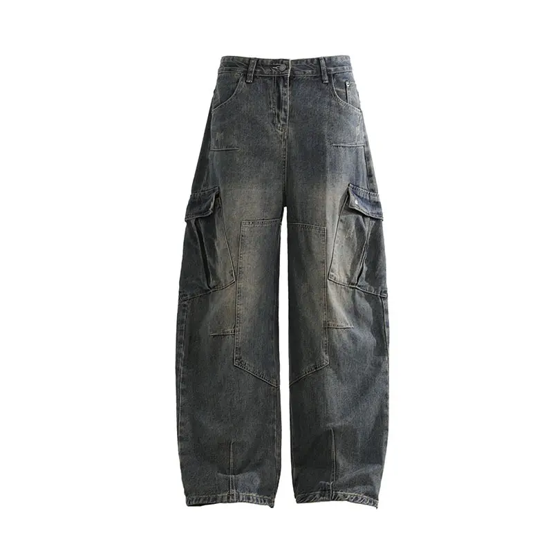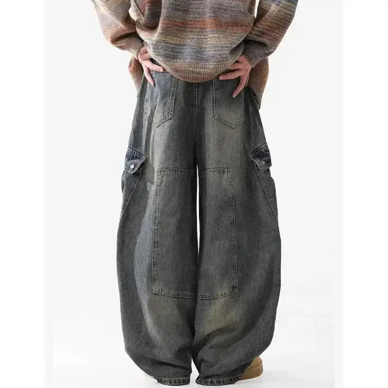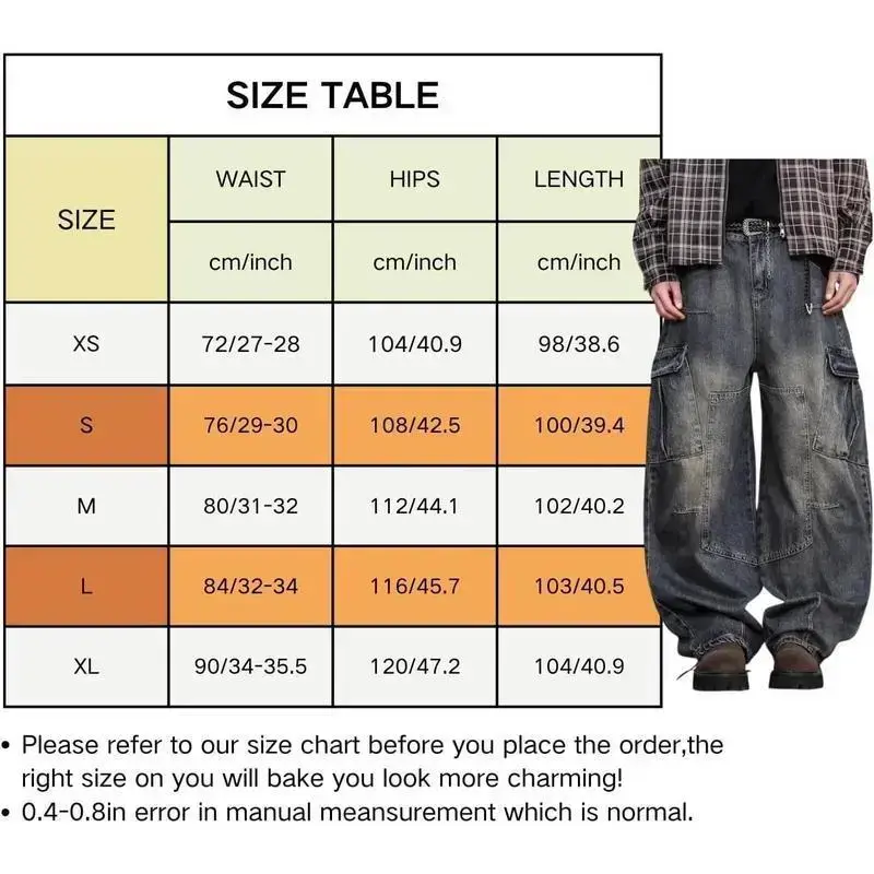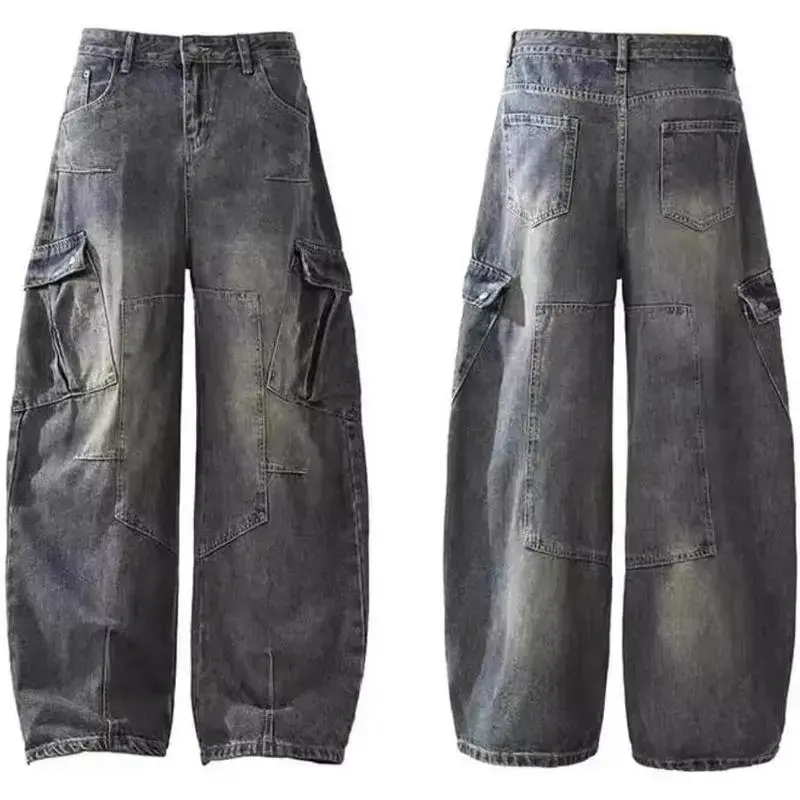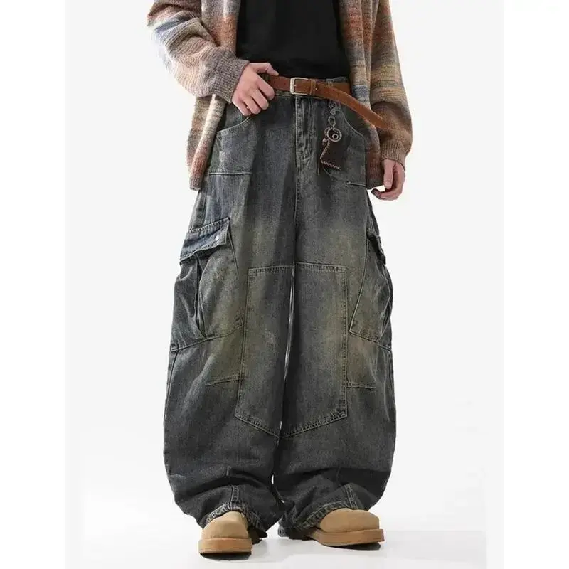 Baggy Barrel Jeans for Men Wide Leg Cargo Jeans Loose Distressed Denim Oversized Pants Fashion Casual Clothes