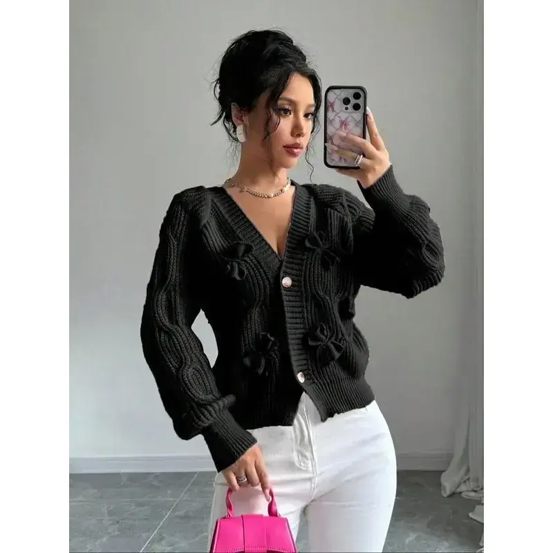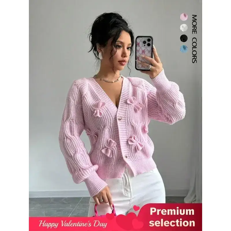 This Women's Plain Bow Front Sweater Cardigan is perfect for casual outings. It features a raglan sleeve design and button front closure. Ideal for fall and winter, this knitwear is a must-have for daily wear. 🧶 Perfect for Special Occasions