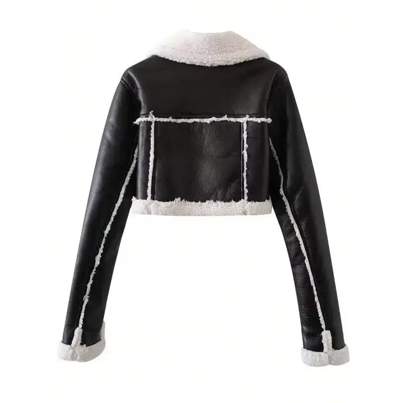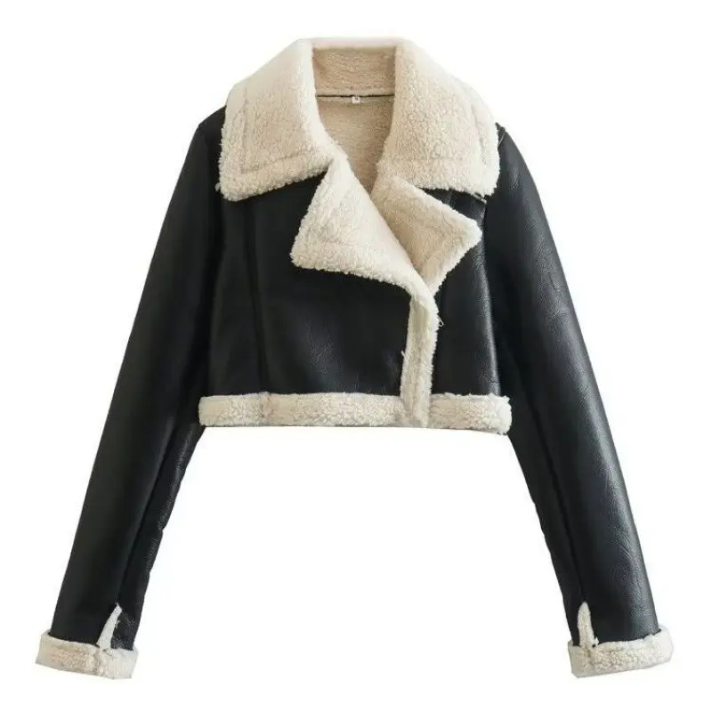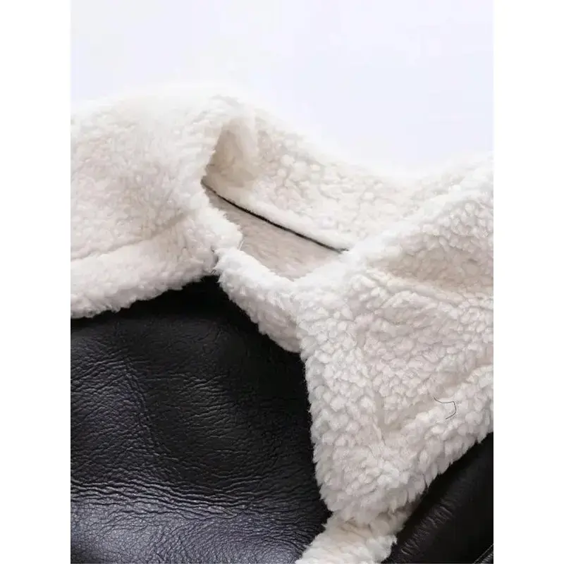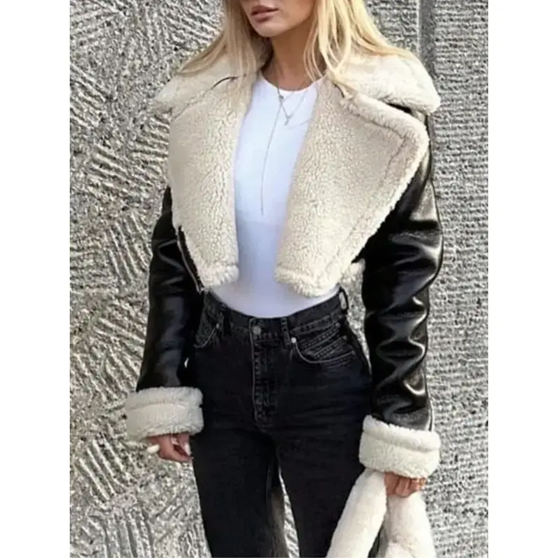 Street Style PU Leather Motorcycle Jacket with Zipper Collar and Teddy Fleece Lining, Trendy Roll-Up Sleeves Design for Men & Women