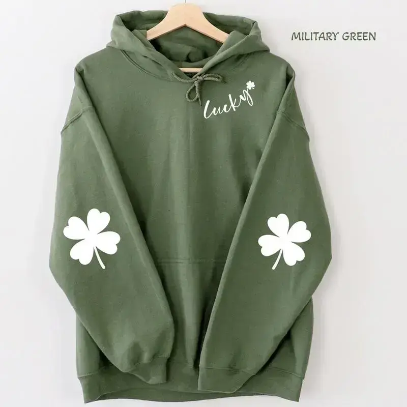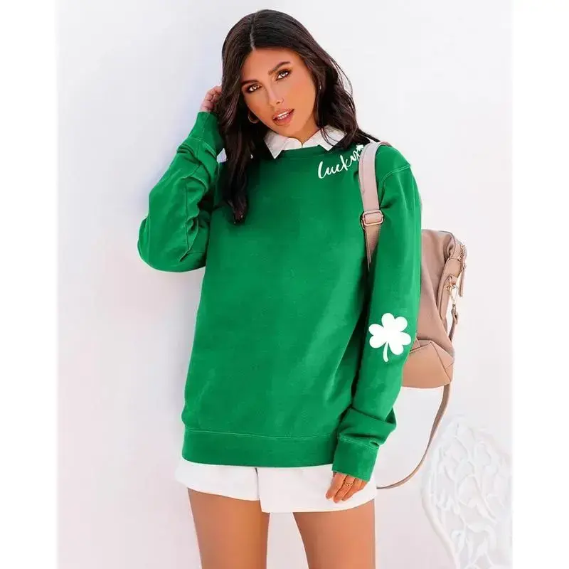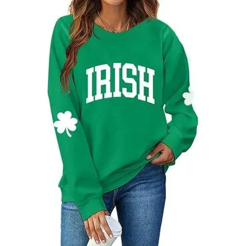 St. Patrick's Day Sweatshirt for Women Lucky Shamrock Long Sleeve Shirt 100% Cotton with Clover Print Pullover Tops Unisex Crewneck - Fabric