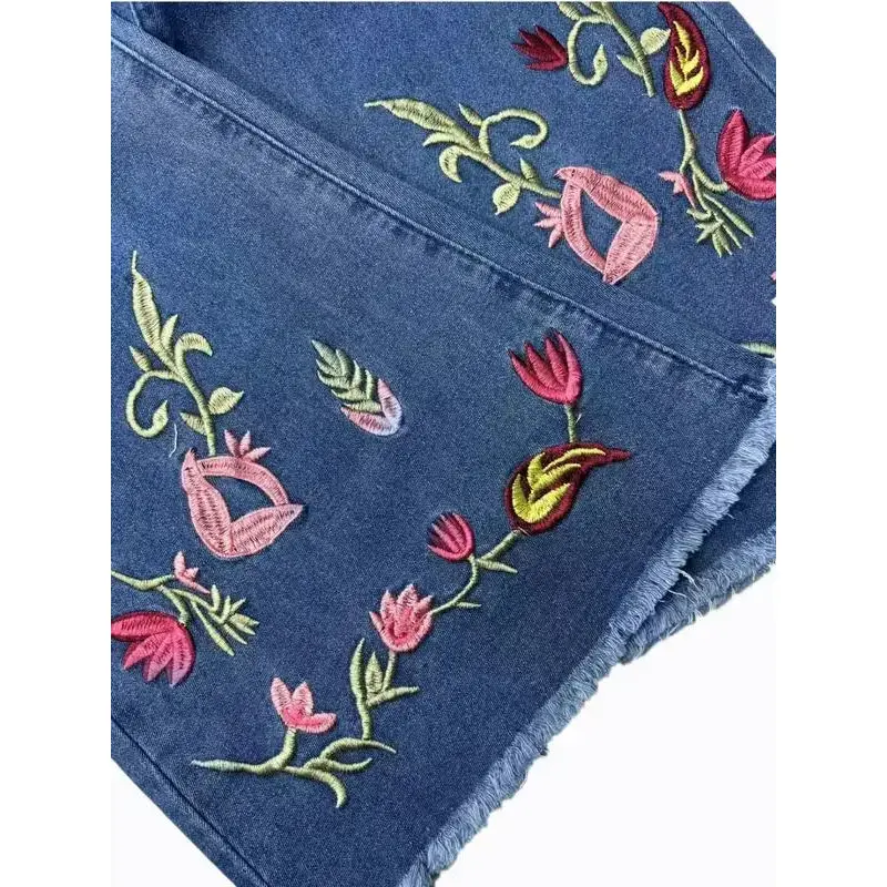 【Plus Size】Floral Embroidery Flare Leg Stretchy Jeans, Fashion Casual Bell Bottom Trousers for Daily Outdoor Wear, Women Plus Clothing for All Seasons