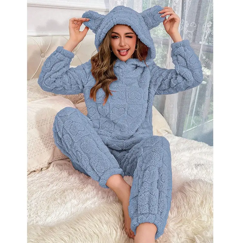 ??Cozy Fabric??: Crafted from thick knit fabric, providing warmth and a soft touch suitable for fall and winter. ??Charming Hearts??: Features a playful hearts pattern, adding a unique and cheerful flair in your home wear collection. ??Functional Zipper??: Equipped with a practical zipper closure, ensuring ease of wear and versatility in daily routines. ??Fitted Cut??: Designed with a fitted silhouette that enhances the natural shape while maintaining a snug feel. ??Hooded Feature??: Incorporates a cute hood, offering extra warmth and a fun style element to your loungewear.