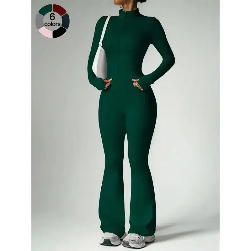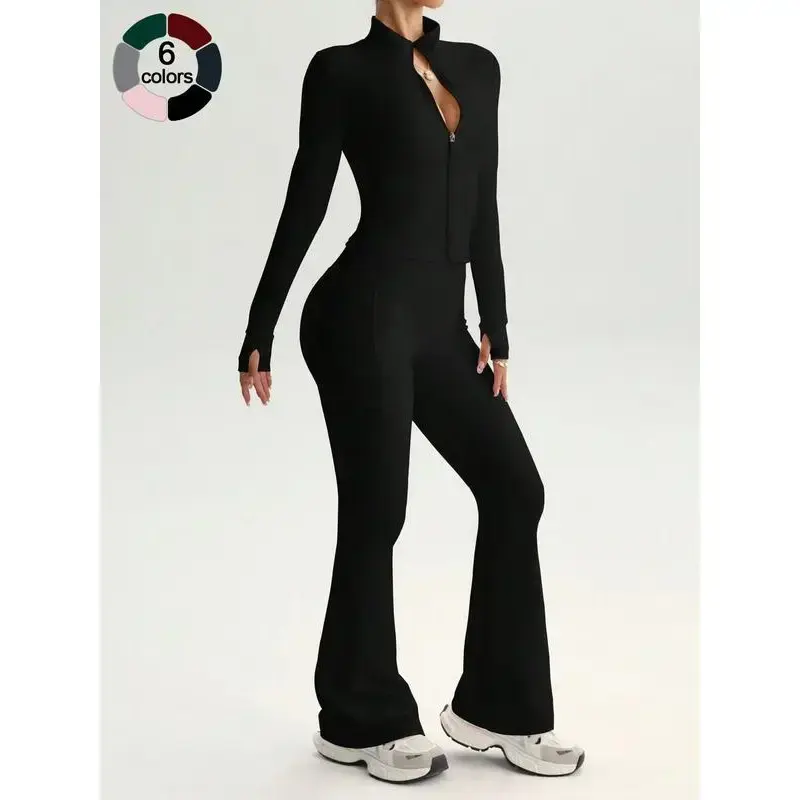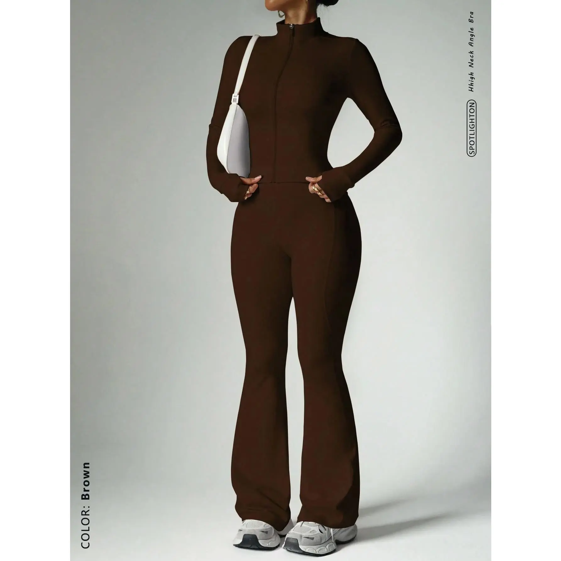 Women's 2-Piece Solid Color Set Long Sleeve Stand Collar Jacket with Thumb Holes, Breathable Yoga for Gym Outdoor Running, Breathable Activewear(gift)