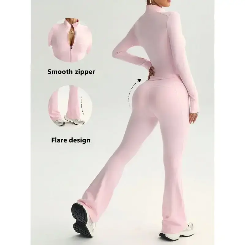 【Thumbhole Jacket】: Features a unique thumbhole design on the long sleeve jacket for enhanced fit and coverage during workouts. 【Breathable Material】: Crafted from breathable fabric, ensuring ventilation and comfort during various activities like yoga and running. 【Tummy Control】: Includes a body-shaping feature in the tops, providing tummy control for a secure and flattering fit. 【Ankle-Length Pants】: The above-the-ankle length of the pants enhances mobility while providing a contemporary athletic look. 【Seasonal Wear】: Designed specifically for fall and winter, offering warmth alongside functionality for your outdoor and gym activities.