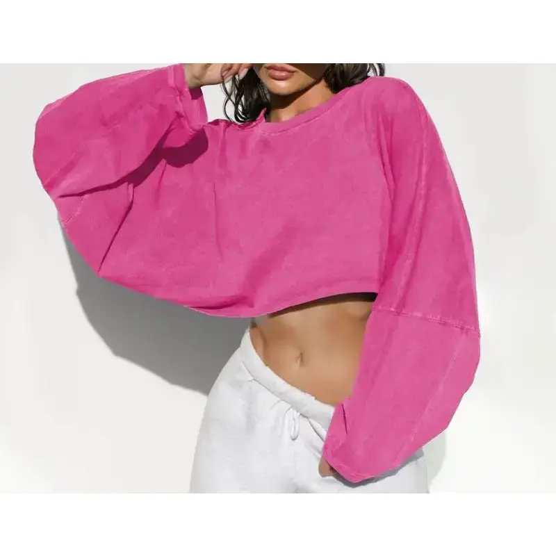 WomensLongBallonSleeveSweatshirtsTopsCroppedCrewNeckLooseFitCasualWorkoutShirts