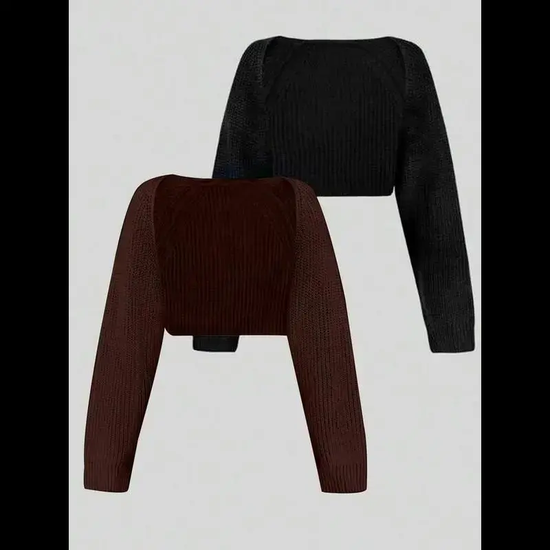 Women's Minimalist Texture Raglan Sleeve Shrug Suit, Cardigan, Back to School Cardigan, Comfortable Basic Long Sleeve Knitwear Autumn Two-Piece Suit Tops Casual Womenswear Knitting