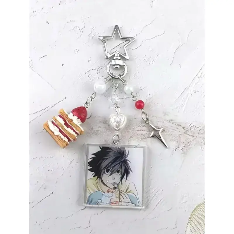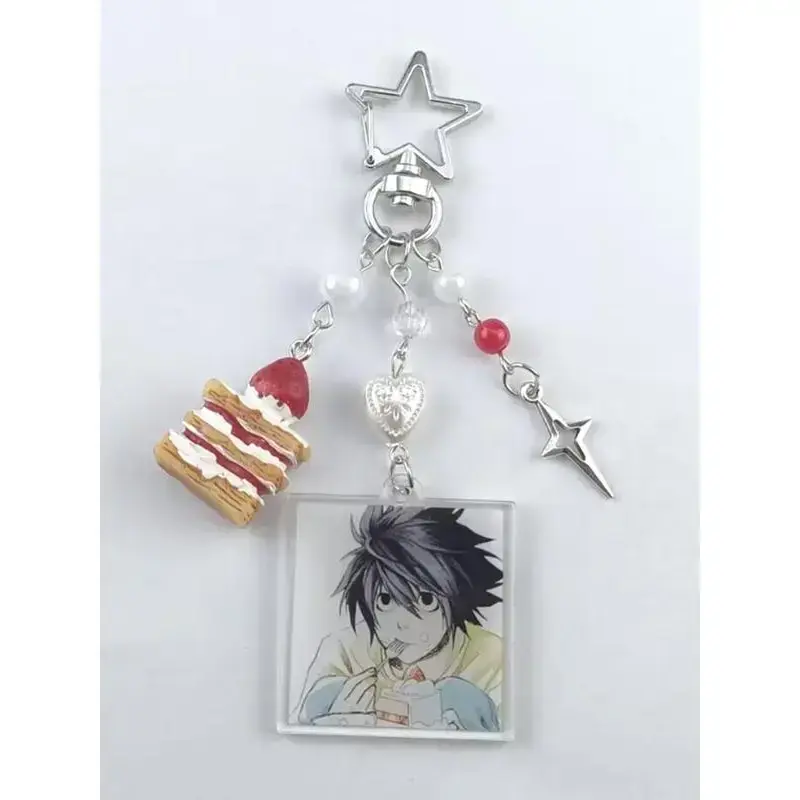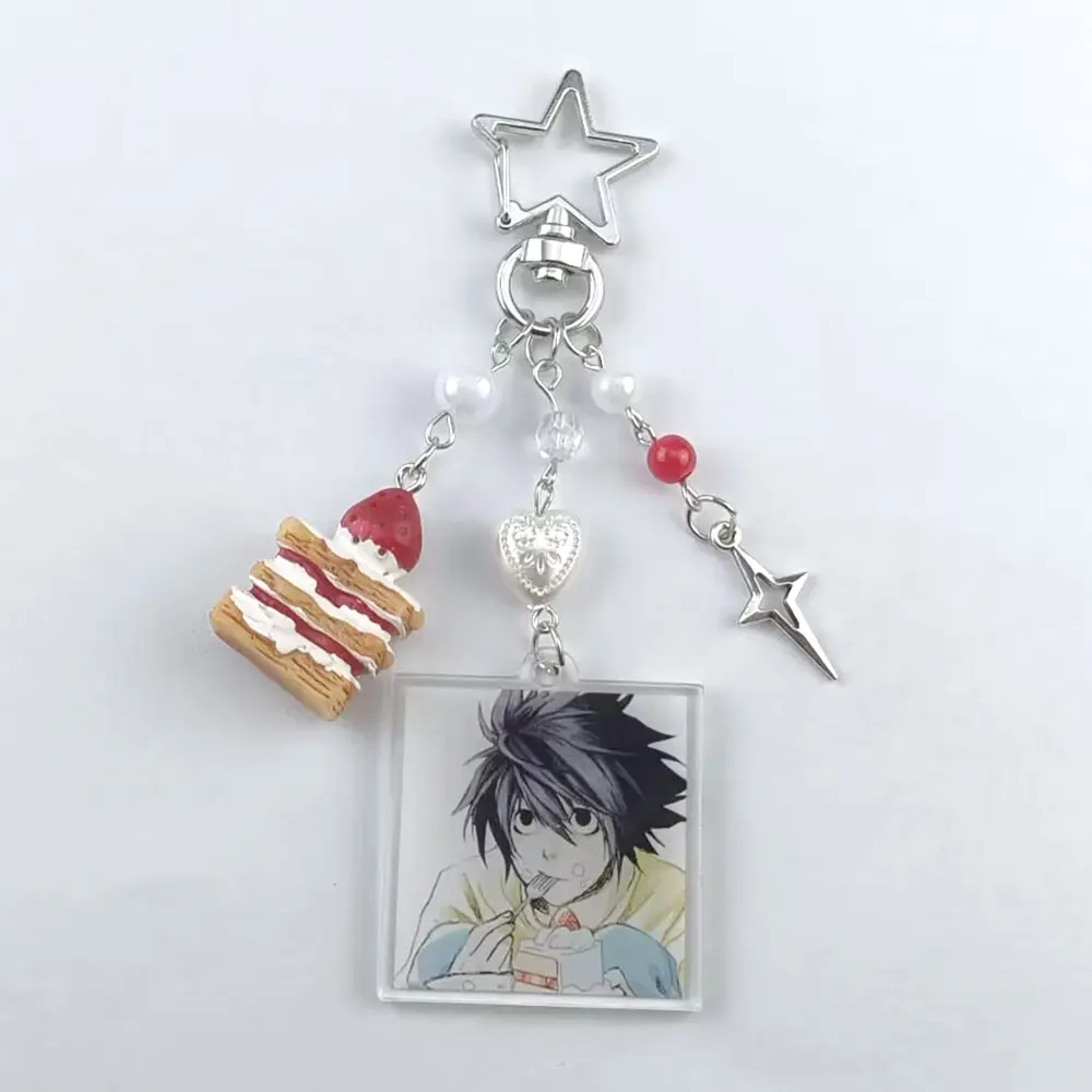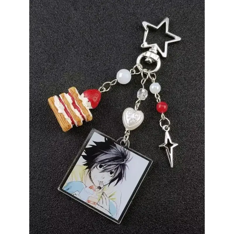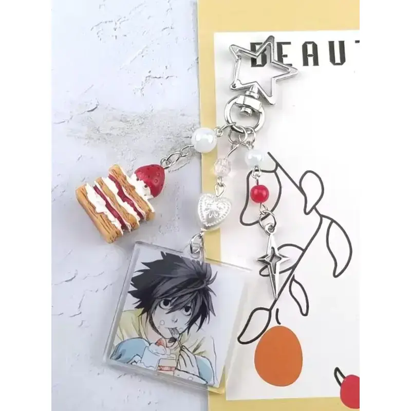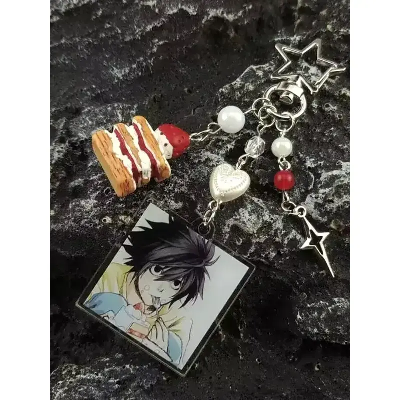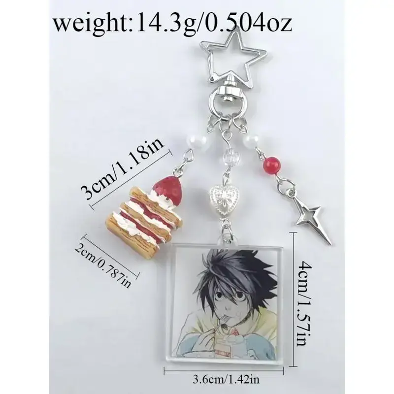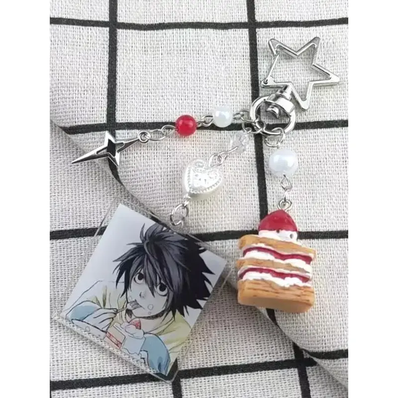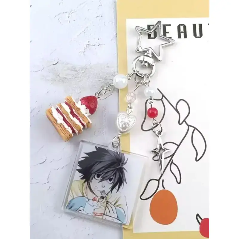 Death Note Character Strawberry Cake Acrylic Keychain, Korean Style Car Keys Accessory, Zinc Alloy Material, All Seasons Use