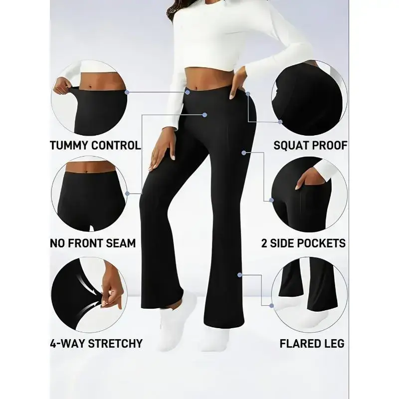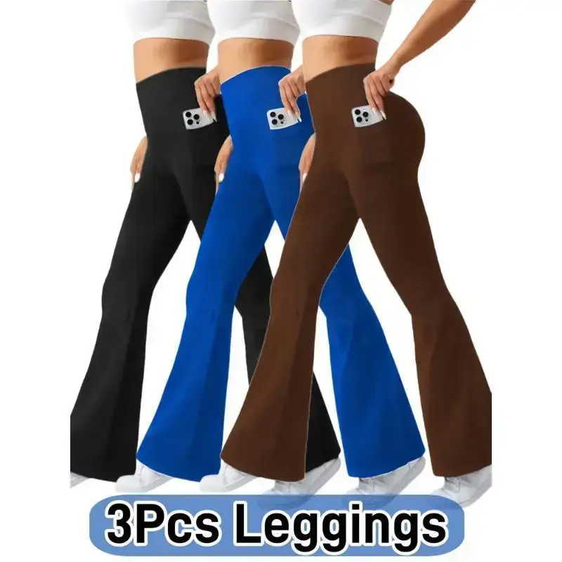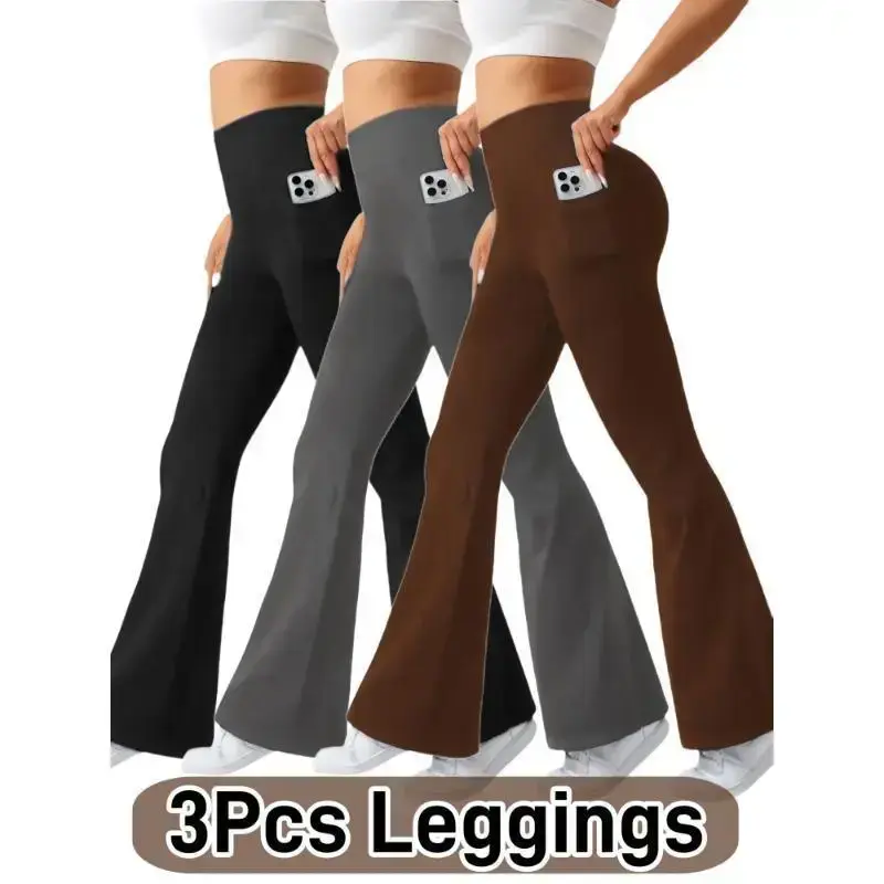 Ultra-Soft High-Waist 3pcs Women'S Flare Leggings with Side Pockets - Tummy Control, Stretchy Bootcut Pants for & Casual Wear 4 Colors