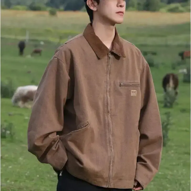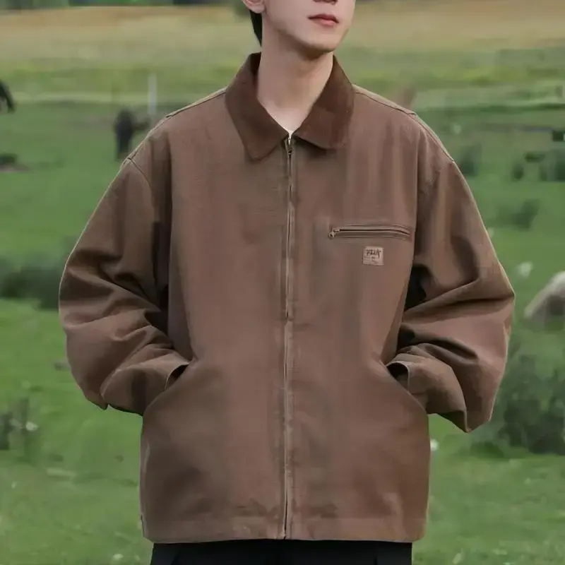 Vintage Jacket Men Casual Loose Fashion High Quality Soft Comfortable Handsome Versatile Coat Streetwear Harajuku Beige Brown Long Sleeve Plain Menswear Tops