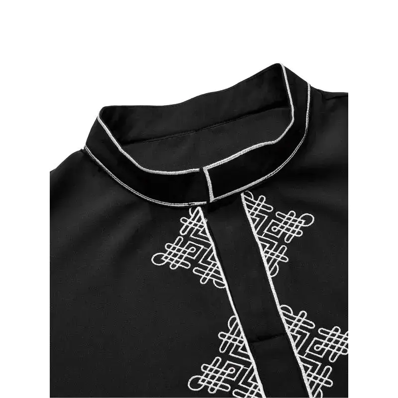 Islamic Muslim Arab Thobe, Men's Black Long Sleeve Classic Embroidery Robe, Ramadan Eid Kaftan with Pocket Great for doing housework, reading, or taking a nap at home.