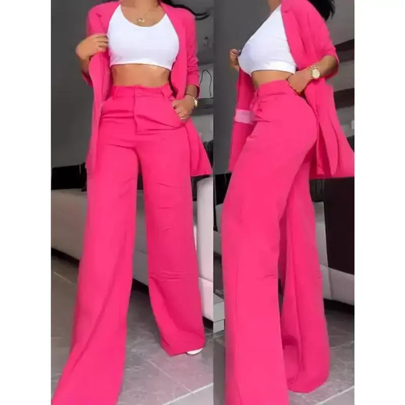 Women's suit Top Suit Pants Two-piece Set Temperament Women's Comfortable Basic Fluorescent Yellow Simple Short suit Spring Less Denim Two-piece Set Women's Two-piece Set creative wide leg jean minimalist lady tech fleece Clothes Trouser Womenswear
