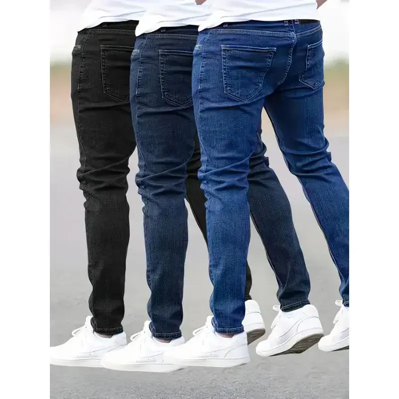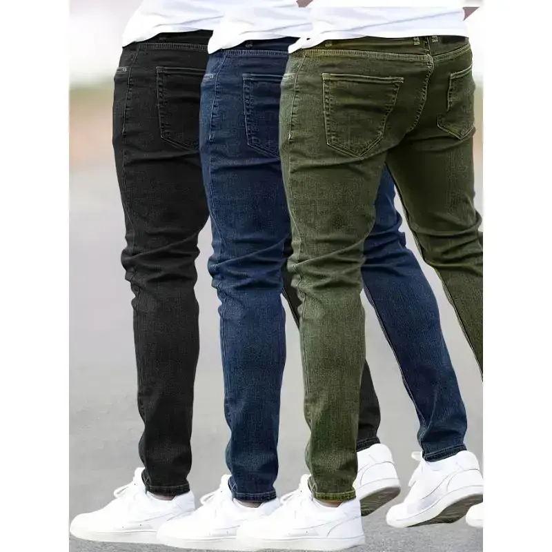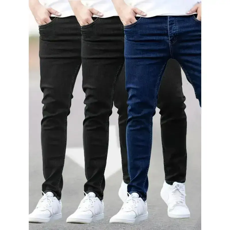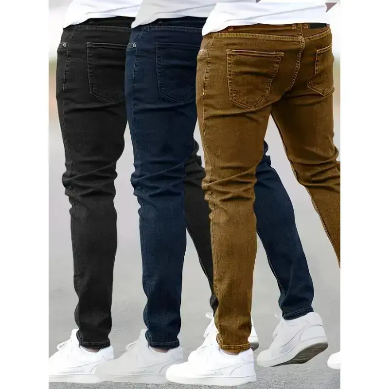 Fine casual men's clothing 3-Pack Men'S Slim Fit Stretch Denim Jeans, Solid Color, Regular Length, All-Season, Classic Style, Mid-Stretch Fabric, Tailored Fit, Men'S Fashion Jeans