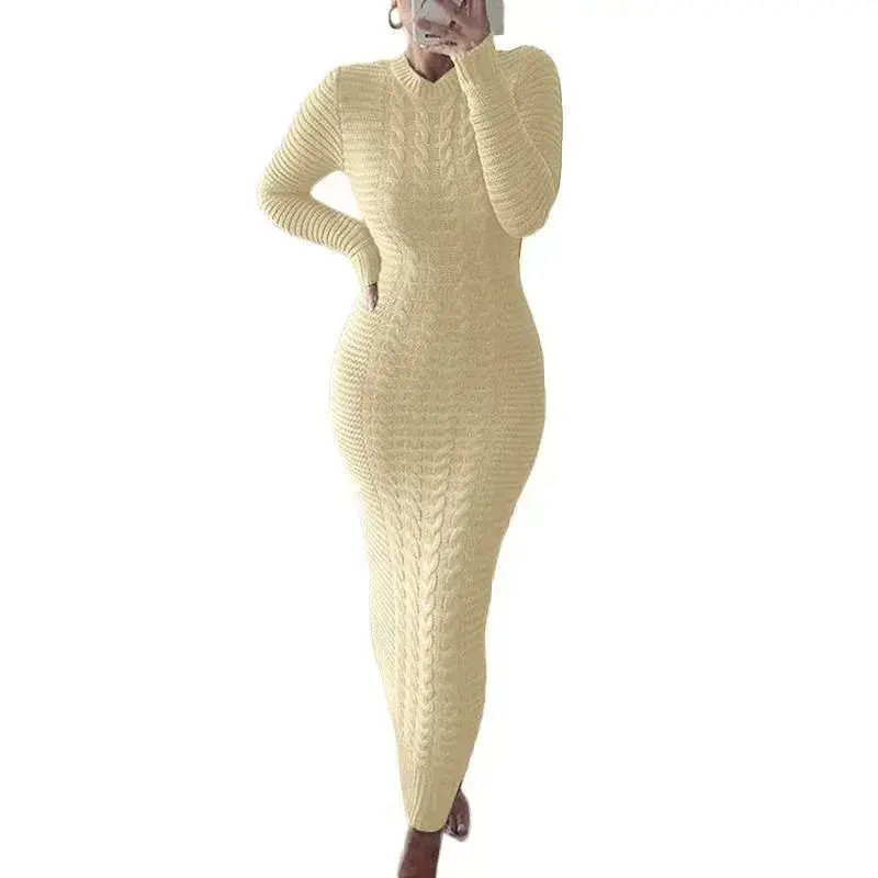 Women Long Maxi Sweater Dress Sexy Half Turtlenck Long Sleeve Tunic Knitwear Ankle Length Bodycon Party Dresses