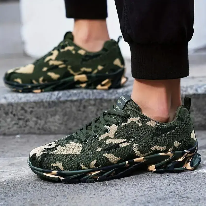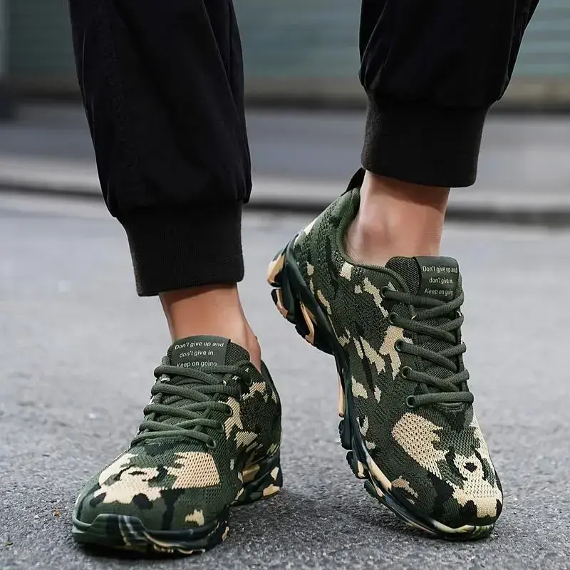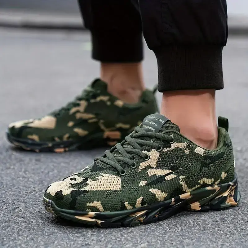 Men's Camouflage Running Sneakers - Breathable Knit Upper, Non-Slip Rubber Sole, Lace-Up Casual Sneakers for All Seasons, Camouflage Shoes